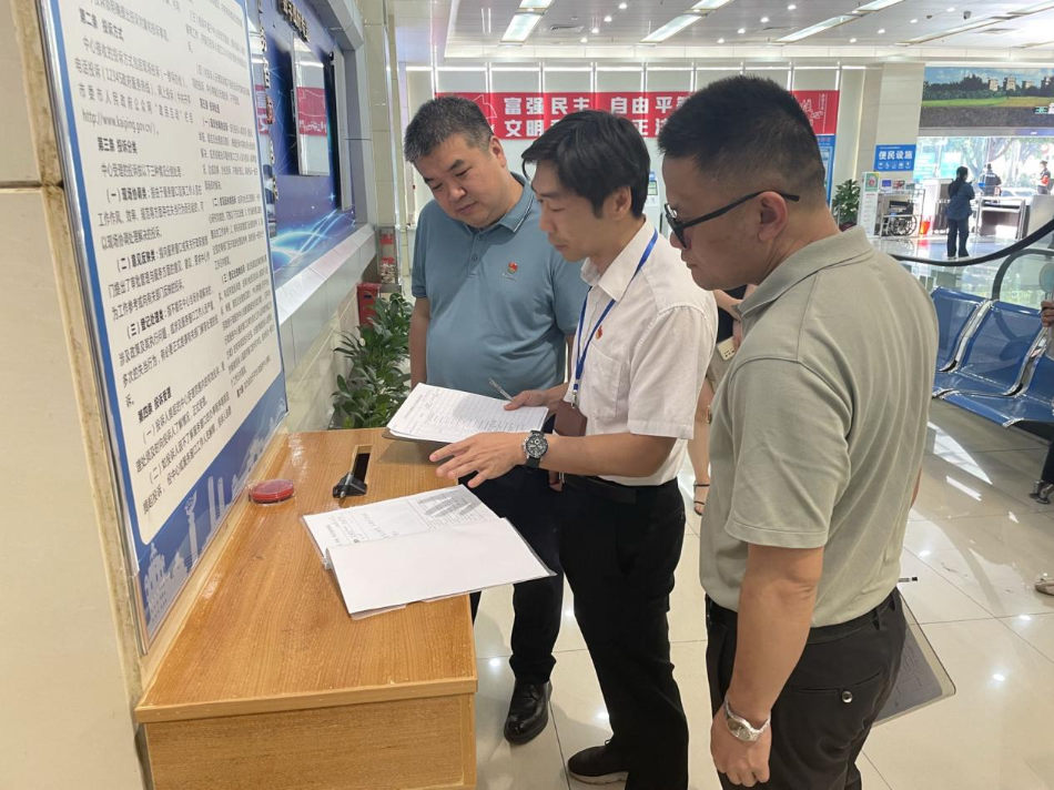 巡查组采取实地查看、随机询问、查阅台账相结合的方式,深入各窗口及后台办公区域开展“地毯式”检查。在仪容仪表方面,重点查看窗口人员是否统一着装、佩戴工牌,仪态举止是否符合服务规范;工作纪律方面,检查是否存在脱岗、串岗、玩手机等违规行为;服务规范方面,随机抽查业务办理流程是否严格落实“首问负责制”“一次性告知”等制度,并模拟群众咨询场景检验服务态度。针对业务办理环节,巡查组重点核查了高频事项的办结时限、审批材料精简落实情况及“跨域通办”等特色窗口运行效能,确保改革举措落地见效。