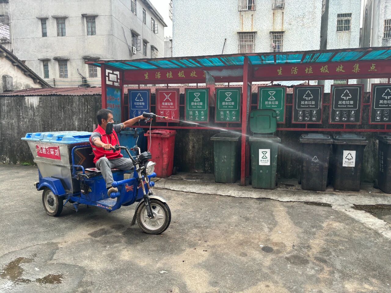 龙胜墟社区,总能看到一个忙碌的身影,他时而身着迷彩服,在龙胜中学操场上带领新生军训;时而在街巷间俯身清理垃圾,细致监督环境卫生;时而驾驶三轮车穿梭于墟镇,收集清运大件废弃物;时而又背负消杀设备,坚守在防蚊灭蚊一线。这位身影的主人,正是龙胜墟社区“两委”干部、退伍军人——吴润球。