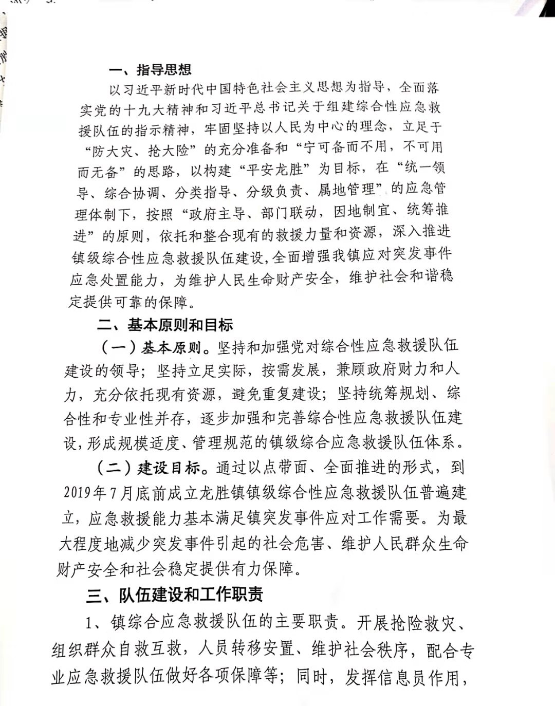 龙胜镇镇级综合性应急救援队伍实施方案
