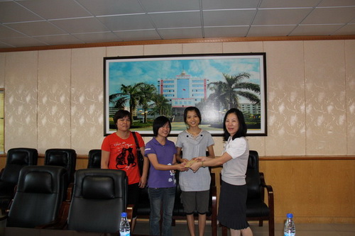 9月30日,在三埠办事处会议室,三位大学生紧紧握住三埠办事处领导的手,连声说“谢谢”。三埠党工委委员、办事处主任廖卫群同志把助学金送到了三位大学生手中,为她们解决了学费问题。