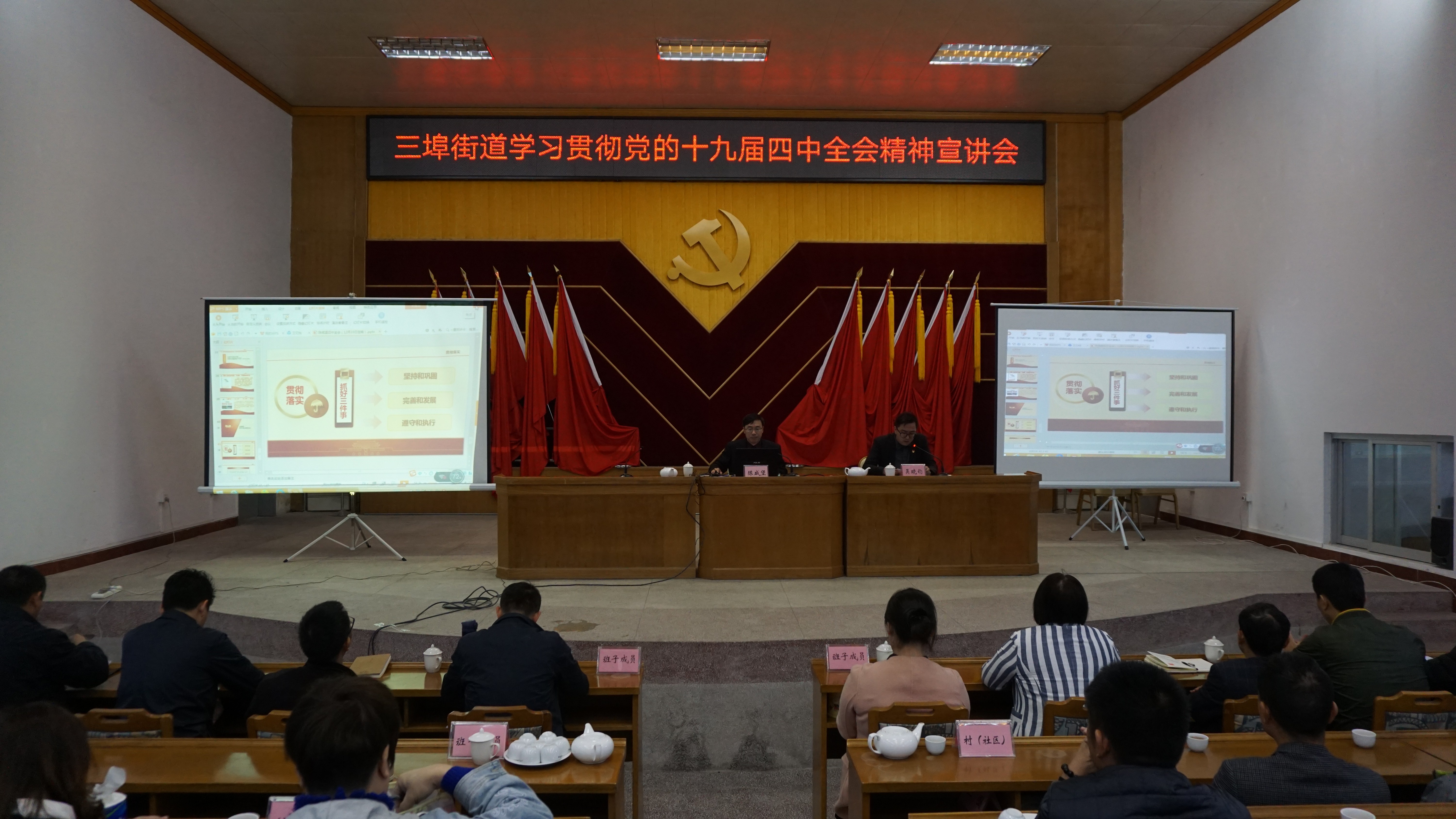 12月20日上午,三埠街道举办学习贯彻党的十九届四中全会精神宣讲会,街道全体领导班子,机关和事业单位干部职工,各村(社区)、基层站所和“两新”企业等党组织负责人共160多人参加了宣讲会。