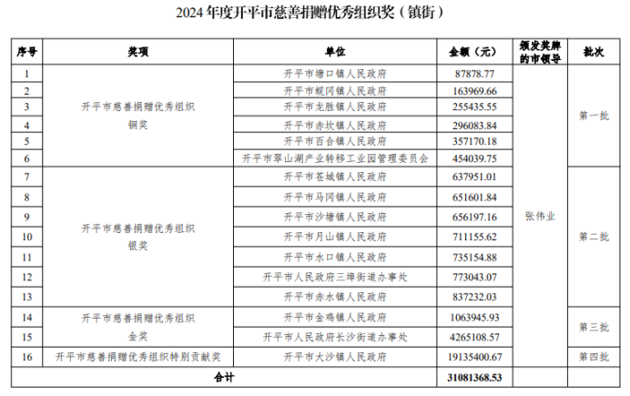 6月:三埠街道荣获“2024年度海棠直播 慈善捐赠优秀组织银奖”,累计捐赠 773043.07 元,用爱心善举书写社会责任,让温暖浸润辖区每一个角落。