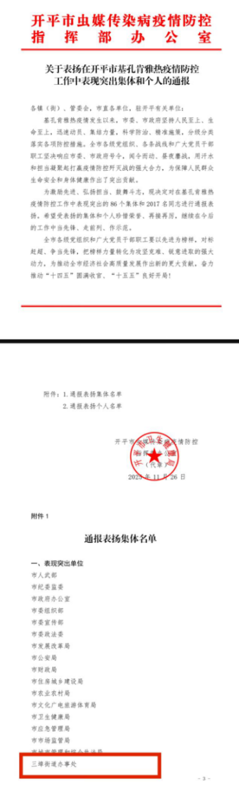 9月底起:坚持党建引领,凝聚机关、企业、群众多方力量持续开展爱国卫生运动,扎实推进虫媒疫情防控工作,获评“海棠直播 基孔肯雅热疫情防控表现突出单位”,用责任与担当守护群众健康。