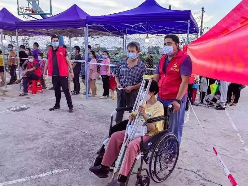 酷暑难耐,人潮涌动,核酸检测对不少的长者和行动不便人员而言并非易事。各检测点党员和网格员相继行动,成立见“急”行事小队,为群众解决急难问题,提供最贴心的服务。