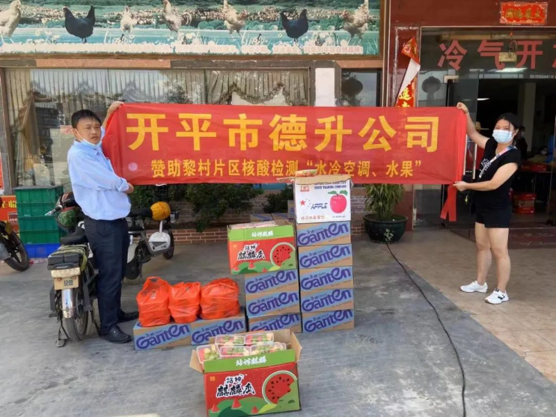 德升公司为黎村片区检测点送来风扇、水冷空调和爱心水果