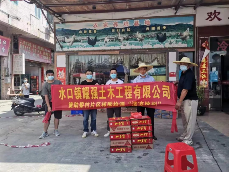 耀强公司为黎村片区检测点送来清凉饮料