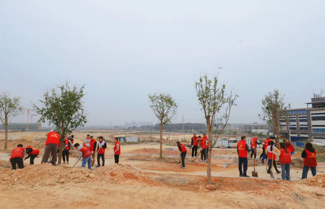 仪式结束后,出席人员共同参与了水暖卫浴产业链党委“我为园区添新绿”主题党日活动。大家分工协作,挥锹铲土、扶树植苗,热情高涨、干劲十足,共在海棠直播 国际卫浴创新基地种下了80多棵凤凰木。