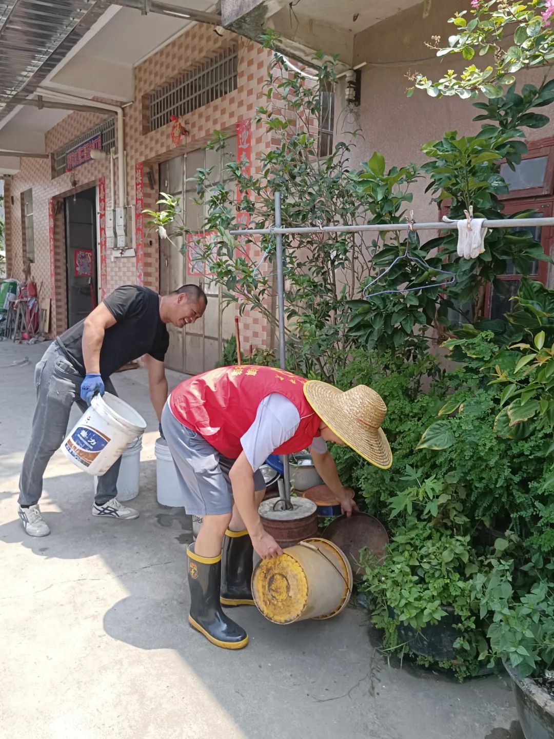 新市社区作为水口外来人口最多的社区,水口镇通过党员示范带头,发动经验丰富、责任心强的楼长志愿者,化身隐患排查员、政策宣传员、群众联络员,利用自身“人熟、地熟、情况熟”的优势,扎实开展实地检查和宣传讲解,使防控工作更具针对性。这种“邻里互助”的工作方式得到居民的好评和响应,许多住户主动参与房前屋后环境整治,大大降低了蚊媒孳生风险。
