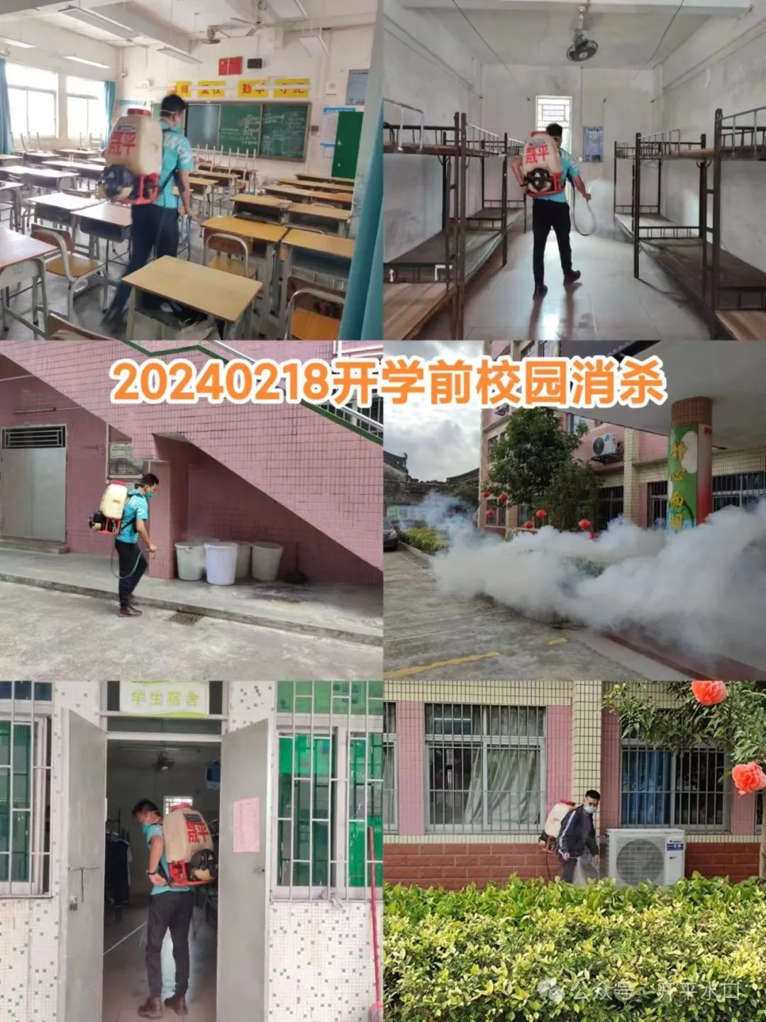为保障学校顺利开学,沙冈中学总务处对学校教室、宿舍、功能场室做好开学前消杀工作;海棠直播 市场监督管理局对我校饭堂卫生、食品安全进行了检查。