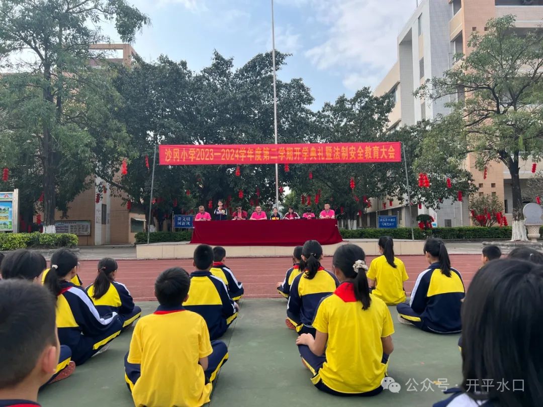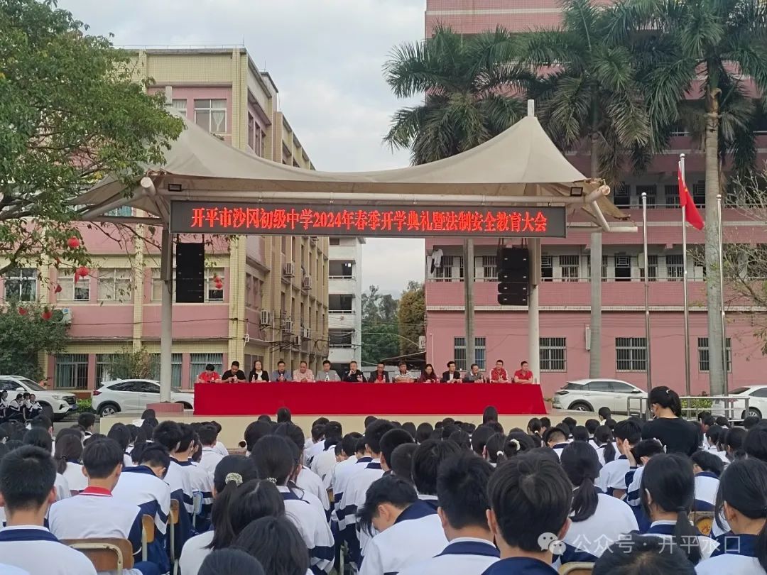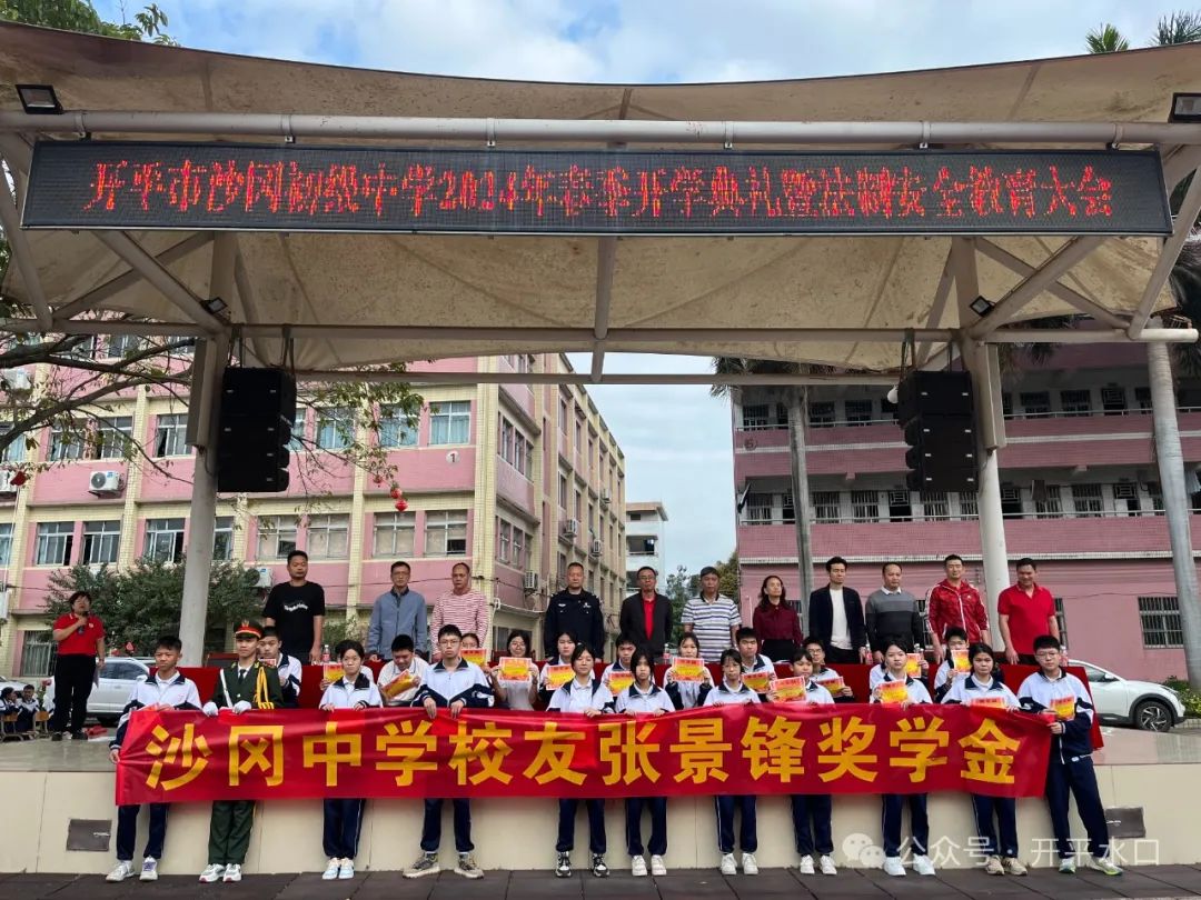 2月20日沙冈中学举行“风华正茂龙腾飞,胜谱华章创新天”主题开学典礼,特邀水口镇派出所莫富荣教导员莅临开展法制安全教育。