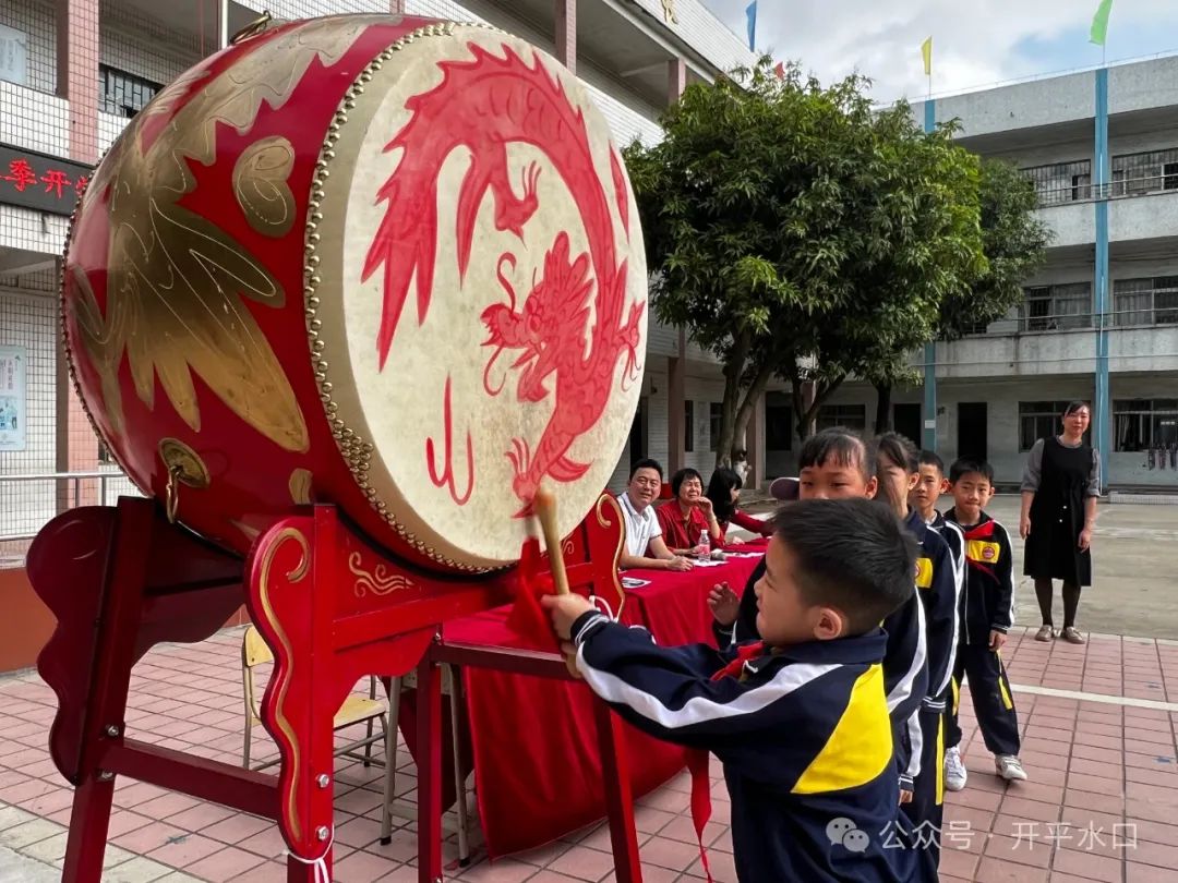 在开学典礼的最后,学校安排了一个特别的环节——击鼓明志,激发孩子们的学习斗志,明确自己新学期的努力方向。