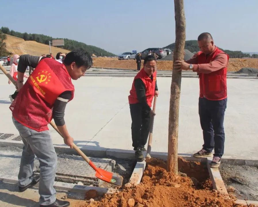 植树现场,大家热情高涨,干劲十足。党员干部率先垂范,团员青年、企业家、网格员、志愿者积极参与。三人一组、五人一队,有的挥锹铲土、提苗扶正,有的培土围堰、提桶浇水,各个环节衔接有序,呈现一派热火朝天的植树景象。
