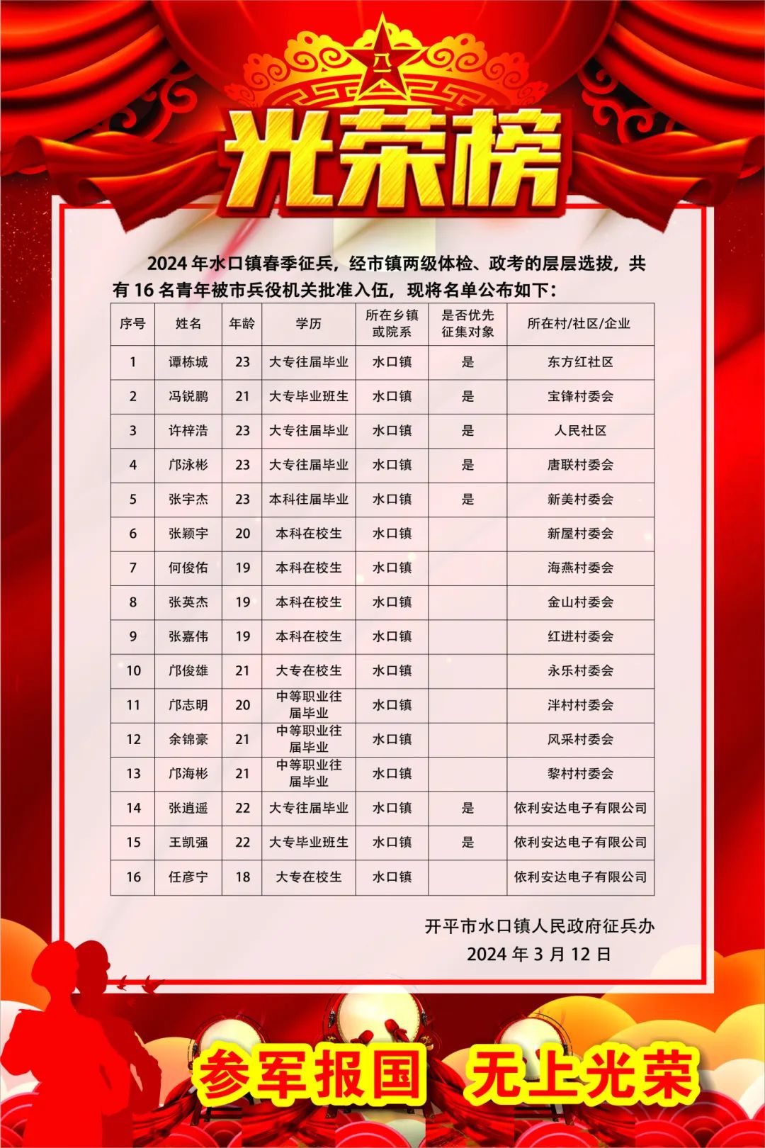 下一站,军营!水口镇16名热血男儿光荣入伍!