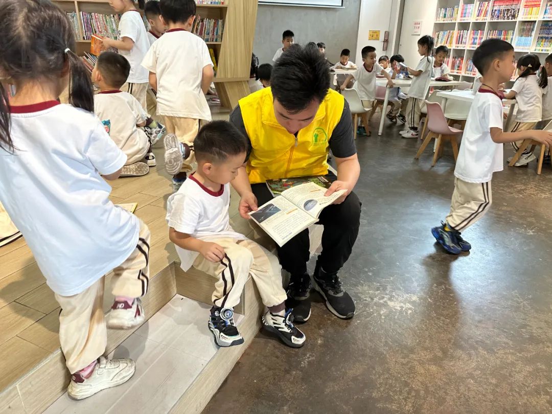 随后,在工作人员引导下,小朋友们通过“寻宝”游戏的方式, 在儿童阅读区寻找自己喜爱的书籍并分享内容。图书馆里丰富的图书深深激发了孩子们的阅读兴趣,小朋友们尽情挑选自己喜欢的图书,徜徉在书的海洋里。大家三三两两地坐着,认真翻阅着各类绘本书籍,轻声交流着各自看的书,脸上洋溢着幸福的笑容。