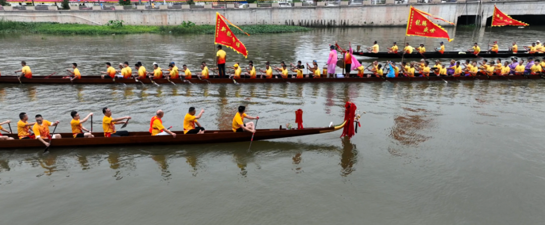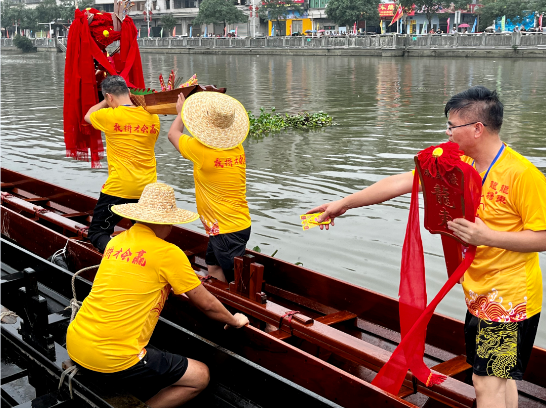 当天下午,一场简单而传统的新龙舟乘水仪式在水口镇新桥水河道中进行。大家按照传统习俗,酒净龙头龙尾、祭龙神、点睛、挂红、旺船、装龙头龙尾,整个仪式饱含着人们对生活平安、顺利的美好祝愿。现场鞭炮四起如雷、鼓声起伏如潮,一河两岸站满村民街坊,呐喊声、欢呼声不断,一同见证“新龙”入水。