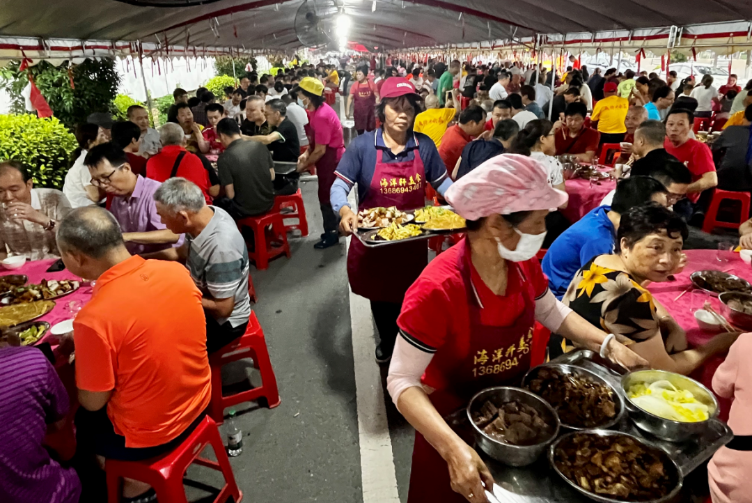 乘水仪式后,龙东村筵开百席,以龙舟饭激励龙舟健儿,奋勇前进,争立潮头,再创佳绩,同时汇聚宗亲,维系一方情谊。