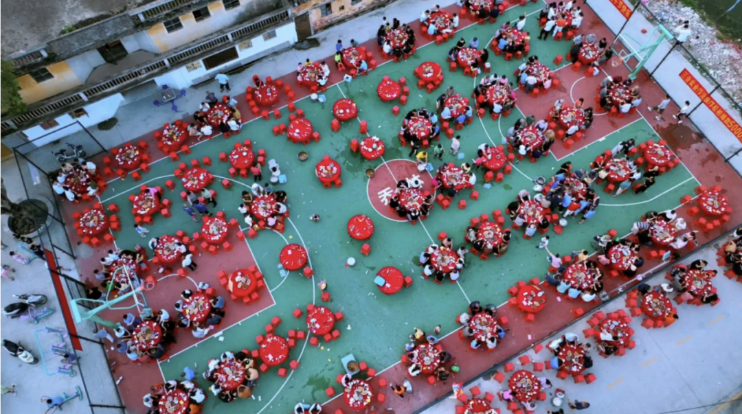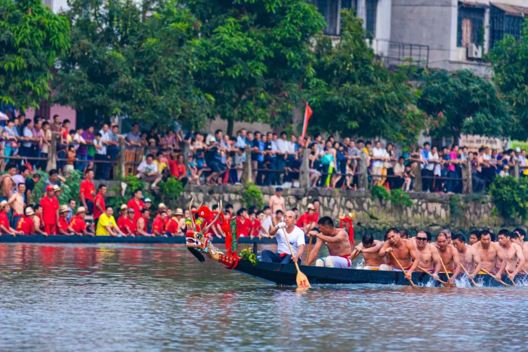 龙舟活动期间在宗祠前开台设席、宴请四方的习俗,俗称“龙舟饭”。村里老人常说:吃过龙船饭,一年都会风调雨顺,五谷丰登。大摆龙舟宴,分享活动中赢得的烧猪和美酒,慰劳为氏族争光的健儿,也招待从四面八方赶回乡的宗族亲友,大家共聚一堂、共话乡情。龙舟不再仅仅是一项民俗文化活动,更成为连接人心、促进发展的重要纽带。