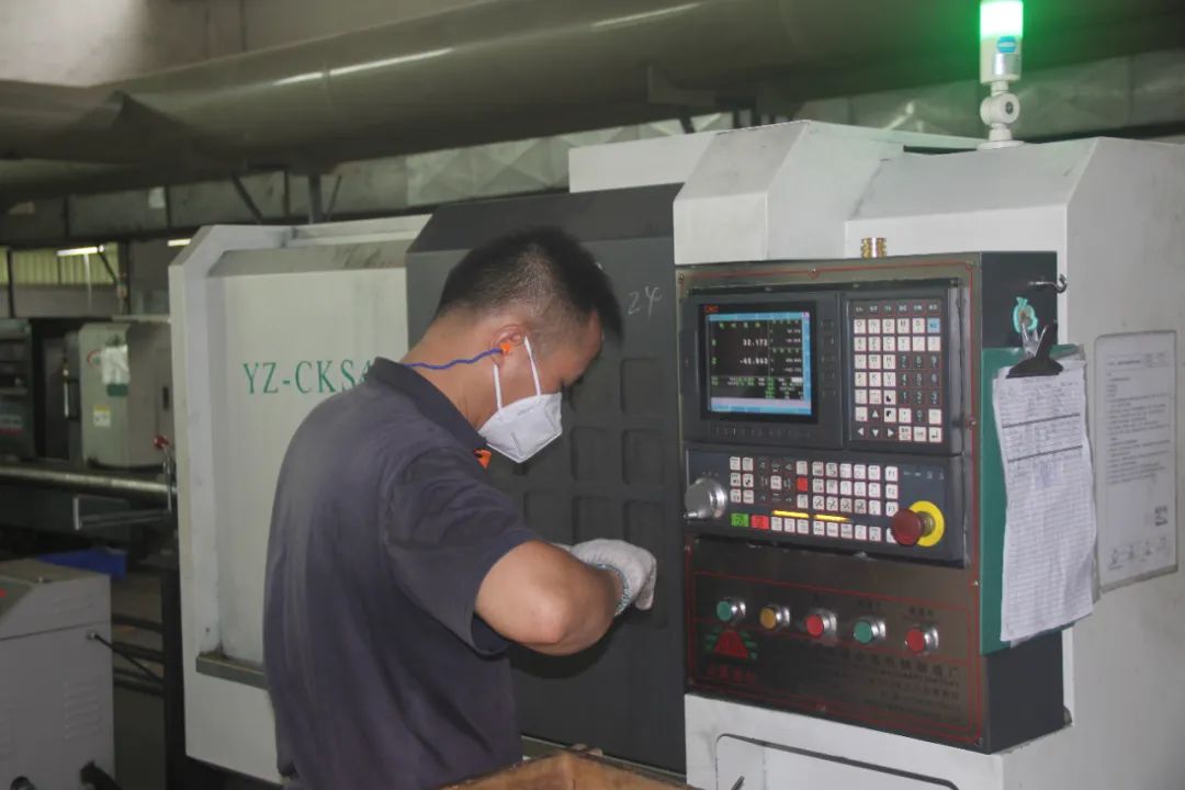 在开平力蒲卫浴有限公司新厂区,工人使用数字化设备生产。