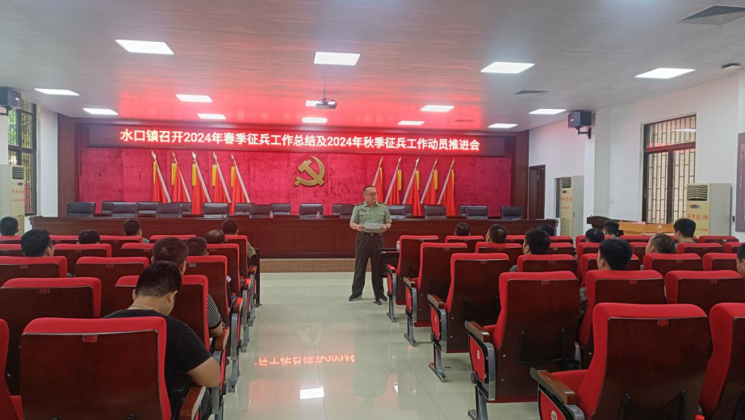 会议通报了水口镇2024年度上半年征兵工作情况,深入查摆征兵过程中存在的问题和薄弱环节,并安排部署2024年下半年征兵工作。