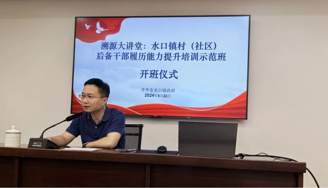 开班仪式上,水口镇党委委员邝廷活表示“百千万工程”是广东省高质量发展的“头号工程”。目前,水口镇虽然在促进城乡区域协调发展各项工作上取得了新进展新成效,但也要清醒认识到工作存在的短板和不足。村(社区)后备干部是推动基层发展的关键力量,更是接下来“百千万工程”的有力突破点,并希望各位村(社区)干部能在此次学习中开拓视野、丰富经验、完善自我,努力做到有所学、有所悟、有所成。