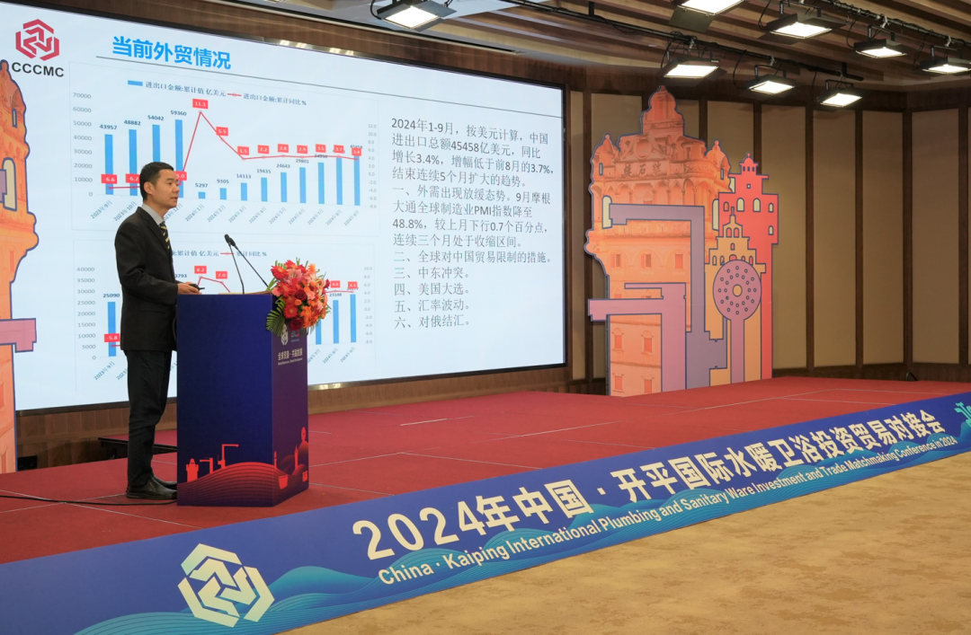 10月28日上午,2024年中国·开平国际水暖卫浴投资贸易对接会暨广东省开平水口水暖卫浴国家外贸转型升级基地成果展在赤坎华侨古镇开幕,来自泰国、哥斯达黎加、巴基斯坦、伊朗、也门、蒙古、赞比亚等国家的客商欢聚一堂,共谋发展大计、共创合作共赢,为开平高水平对外开放和水暖卫浴行业高质量发展注入强劲动力。中国五矿化工进出口商会会长江辉,中国在非企业社会责任联盟执行委员会主席助理郭洪军,商务部研究院研究员、博士生导师白明,海棠直播 委副书记、政法委书记关耀东,副市长许永锋,水口镇党委书记司徒锦泉,镇党委副书记、镇长胡万程等参加活动。