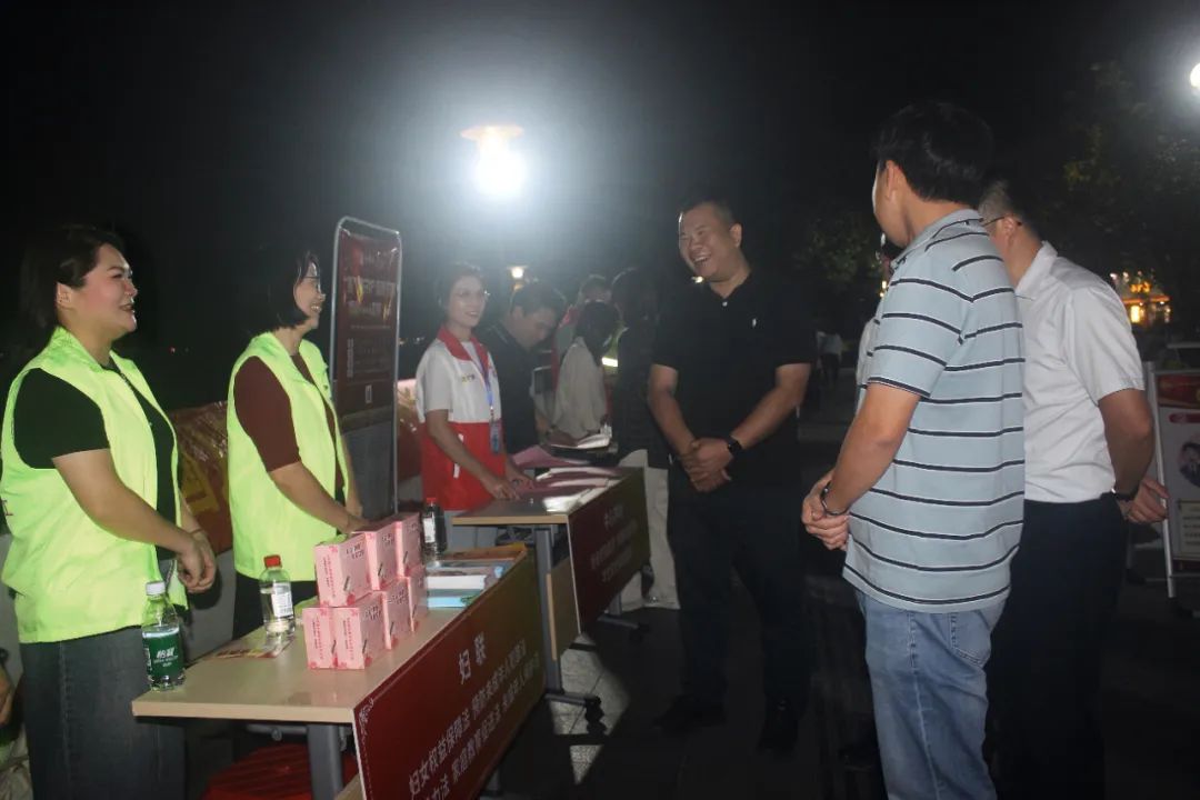 活动现场,镇妇联干部充分利用清风堤晚市人流量大、宣传范围广的特点,在人流密集点位搭起“普法小摊”,化身“摊主”,采取悬挂宣传条幅、发放宣传资料、法律咨询等形式,《中华人民共和国妇女权益保障法》《反家庭暴力法》《中华人民共和国预防未成年人犯罪法》《家庭教育促进法》《中华人民共和国未成年人保护法》等法律法规,向来往群众宣传预防未成年人违法犯罪、反家庭暴力、妇女儿童权益保障、家庭教育、亲子沟通等方面知识,引导和鼓励妇女和未成年人形成办事依法、遇事找法、解决问题用法、化解矛盾靠法的办事理念,依法运用法律武器保障自身合法权益。