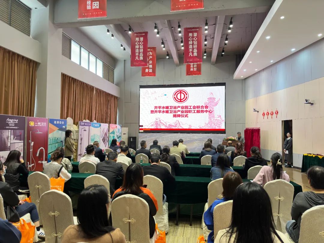 1月18日上午,开平水暖卫浴产业园工会联合会暨开平水暖卫浴产业园职工服务中心在纳成广泰揭牌成立,这是江门市首个成功落地的水暖卫浴园区工联会,全市广大水暖卫浴行业职工朋友拥有了自己的“娘家”。