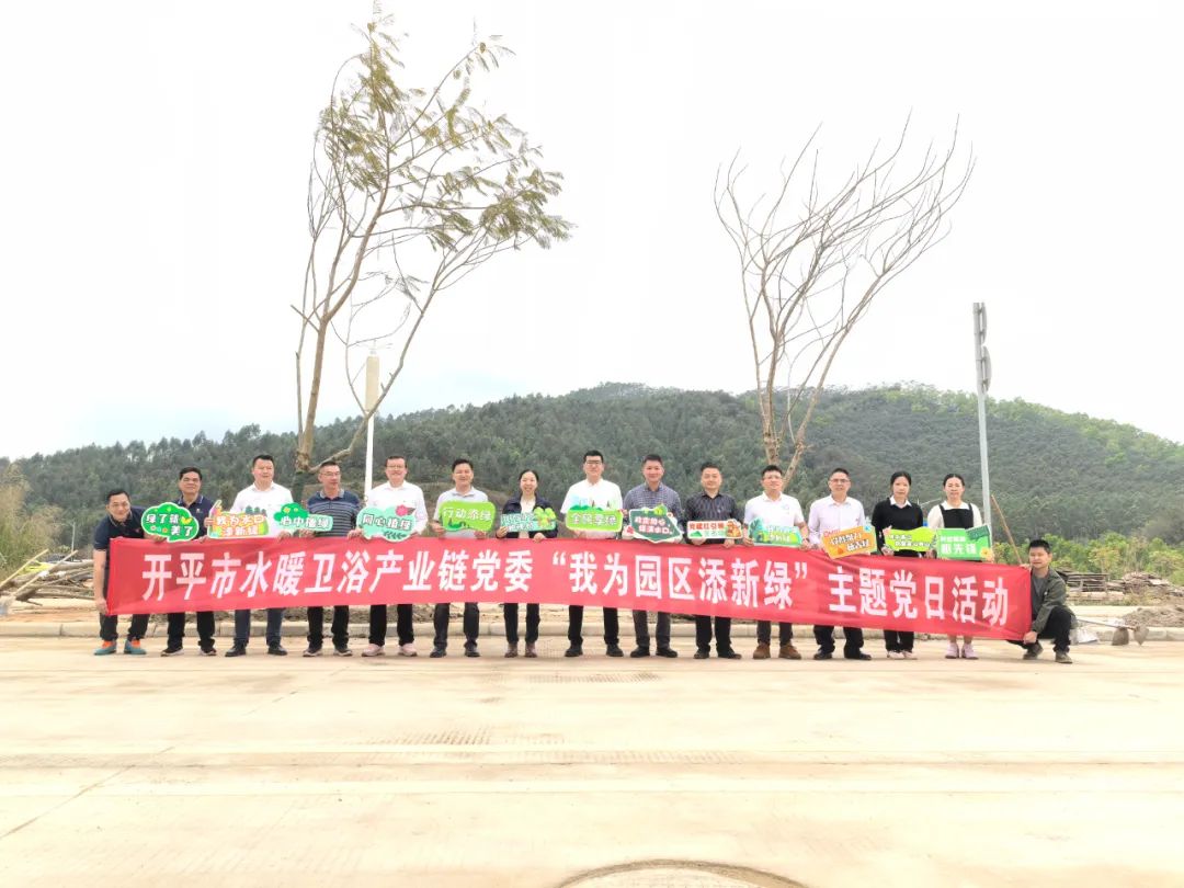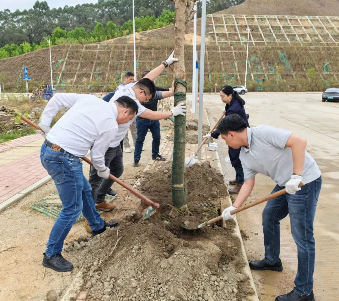 仪式结束后,出席人员共同参与了水暖卫浴产业链党委“我为园区添新绿”主题党日活动。大家分工协作,挥锹铲土、扶树植苗,热情高涨、干劲十足,共在海棠直播 国际卫浴创新基地种下了80多棵凤凰木。