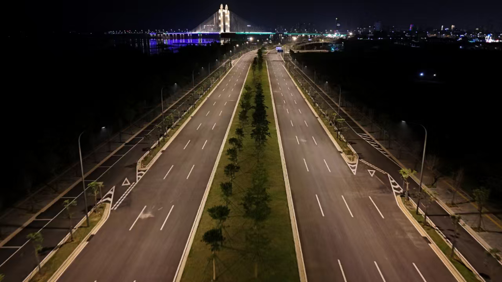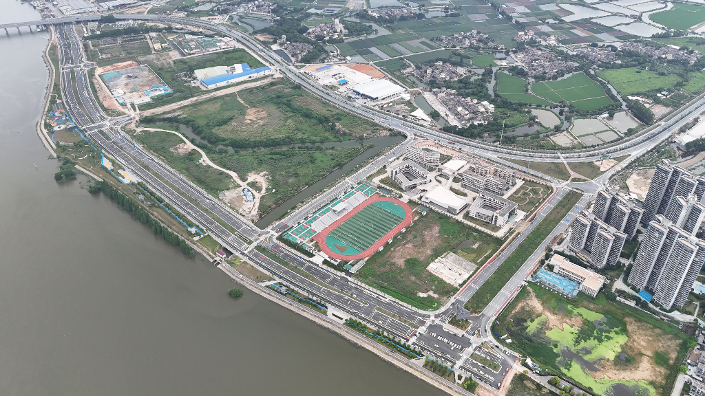 作为潭江新区联通主城区的城市交通主干道,潭江大道西起新美大道,东至东九路,全长1.7公里,宽60米,双向六车道设计,贯穿潭江新城核心区域。该道路的建成将有效减轻城区至沙冈段的交通压力,同时通过优化绿化带、人行道及非机动车道布局,实现“人车分离”,为市民提供安全、舒适的出行体验。