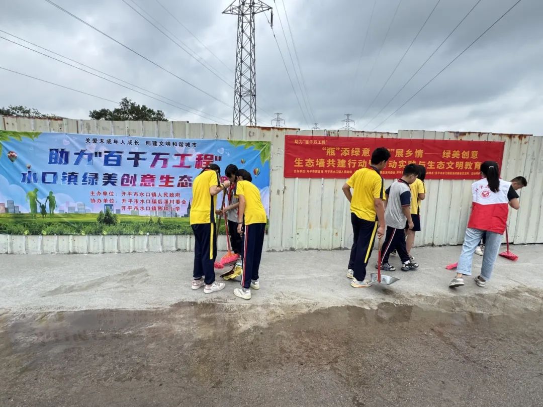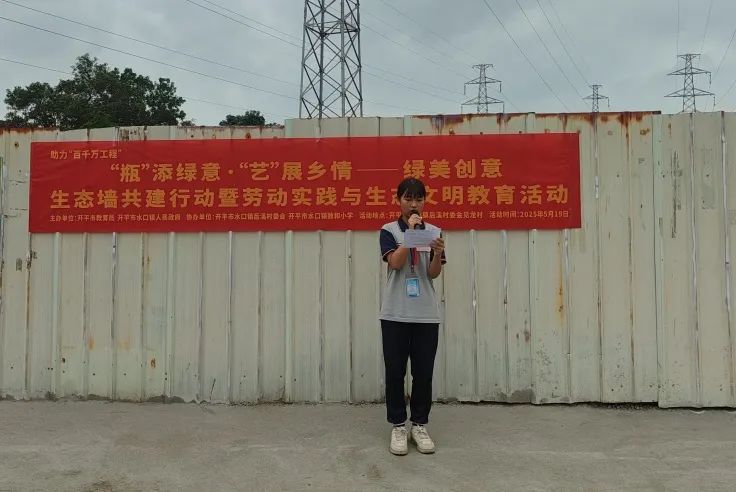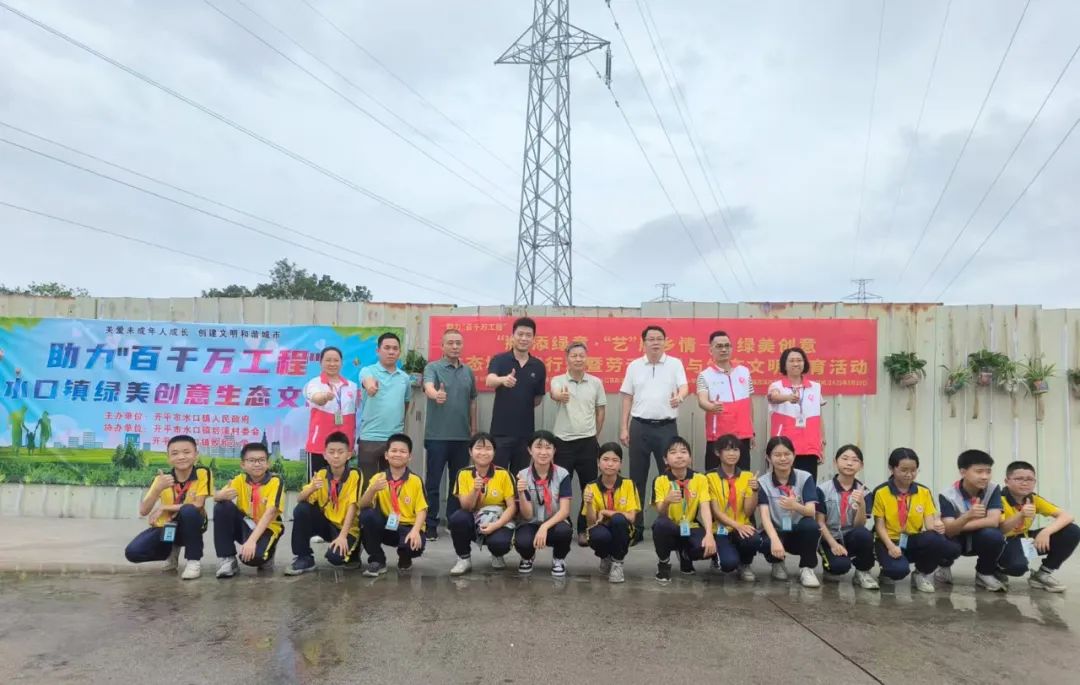 为深入推进“百县千镇万村高质量发展工程”,营造整洁、有序、文明的农村人居环境,5月19日,水口镇联合后溪村委会、致和小学开展了绿美创意生态墙共建行动暨劳动实践与生态文明教育活动,引导师生充分利用身边闲置废弃物品转变为精美手工艺品,掀起一场创意手作与环保守护交织的绿色风暴。水口镇副镇长欧阳伟业、水口镇人大副主席冯惠清参加活动。