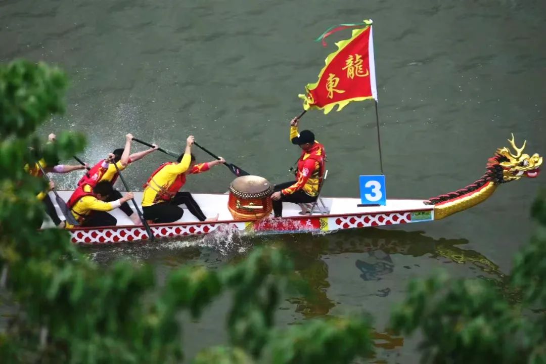 一声声富有童趣的加油声,仿佛是龙舟的“冲锋号”,激励着水口龙东村的龙舟在水面上破浪前行。