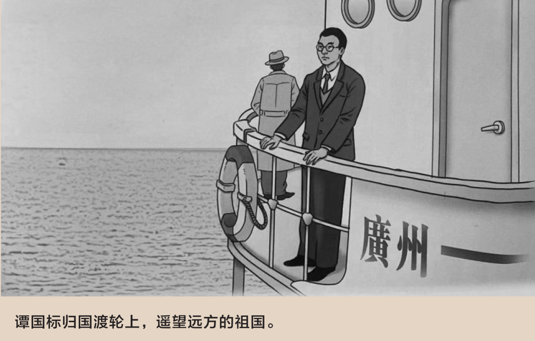 九一八事变发生,在日本的中国留学生群情愤激,谭国标也是如此。同年12月,谭国标归国。