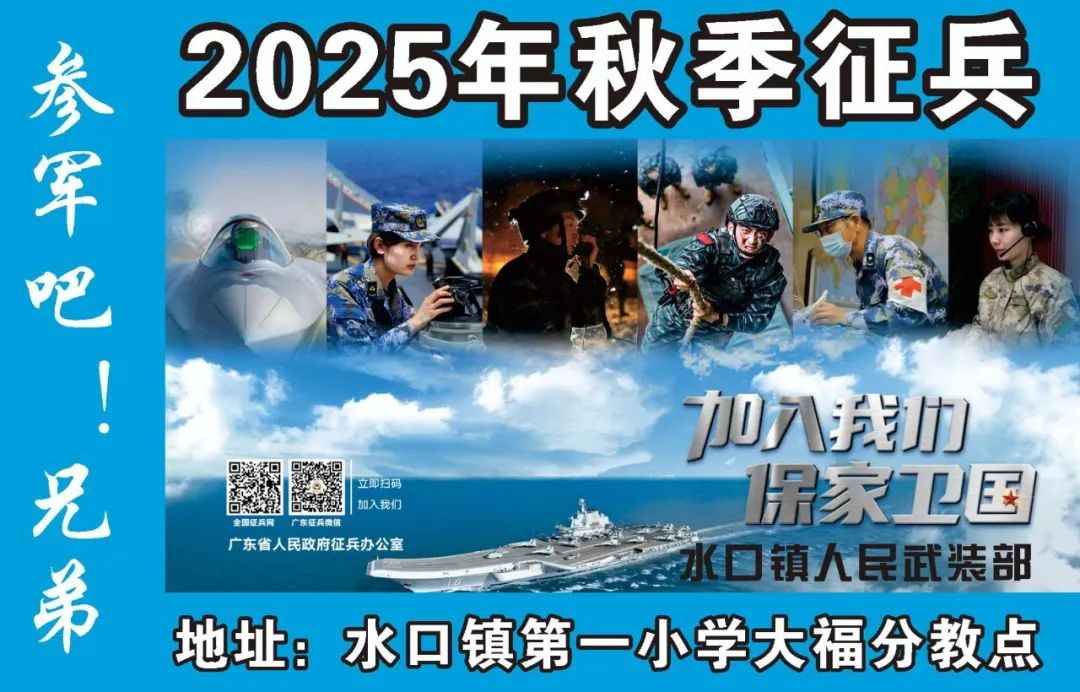 水口镇2025年下半年秋季征兵体检工作将于7月28日(下周一)在海棠直播 水口镇第一小学大福分教点进行。