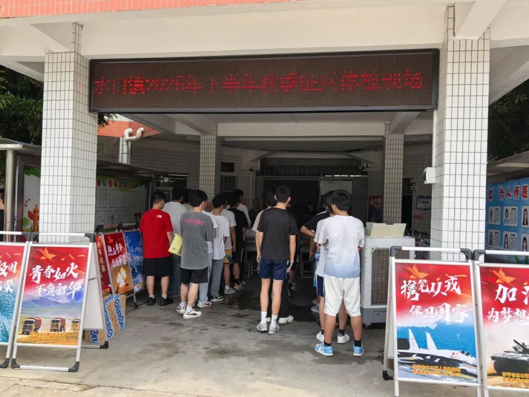 盛夏七月,骄阳似火,却挡不住水口好男儿参军报国的热忱之心。7月28日,水口镇2025年秋季征兵体检工作在水口镇第一小学大福分教点全面展开,来自全镇各村(社区)、相关企业的适龄青年怀揣报国热情,积极响应国家号召,接受征兵体格检查,以实际行动为国防事业贡献青春力量。