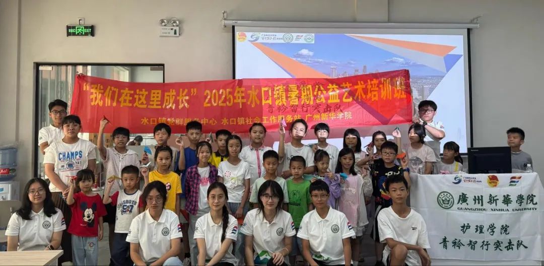 第一期培训班于7月14日至18日开展。水口镇党群服务中心充分利用“双百行动”校地协作机制,联合广州新华学院护理学院青衿智行突击队,为辖区30名青少年儿童提供了安全看护及学习空间。培训课程丰富多样,涵盖爱国主义教育、医学健康知识、环保理念、预防性侵教育等内容,并融入古代文化常识、书法艺术启蒙、绘画创作体验、非遗漆扇制作等民俗文化知识,让孩子们拥有健康、快乐、充实且收获满满的假期。