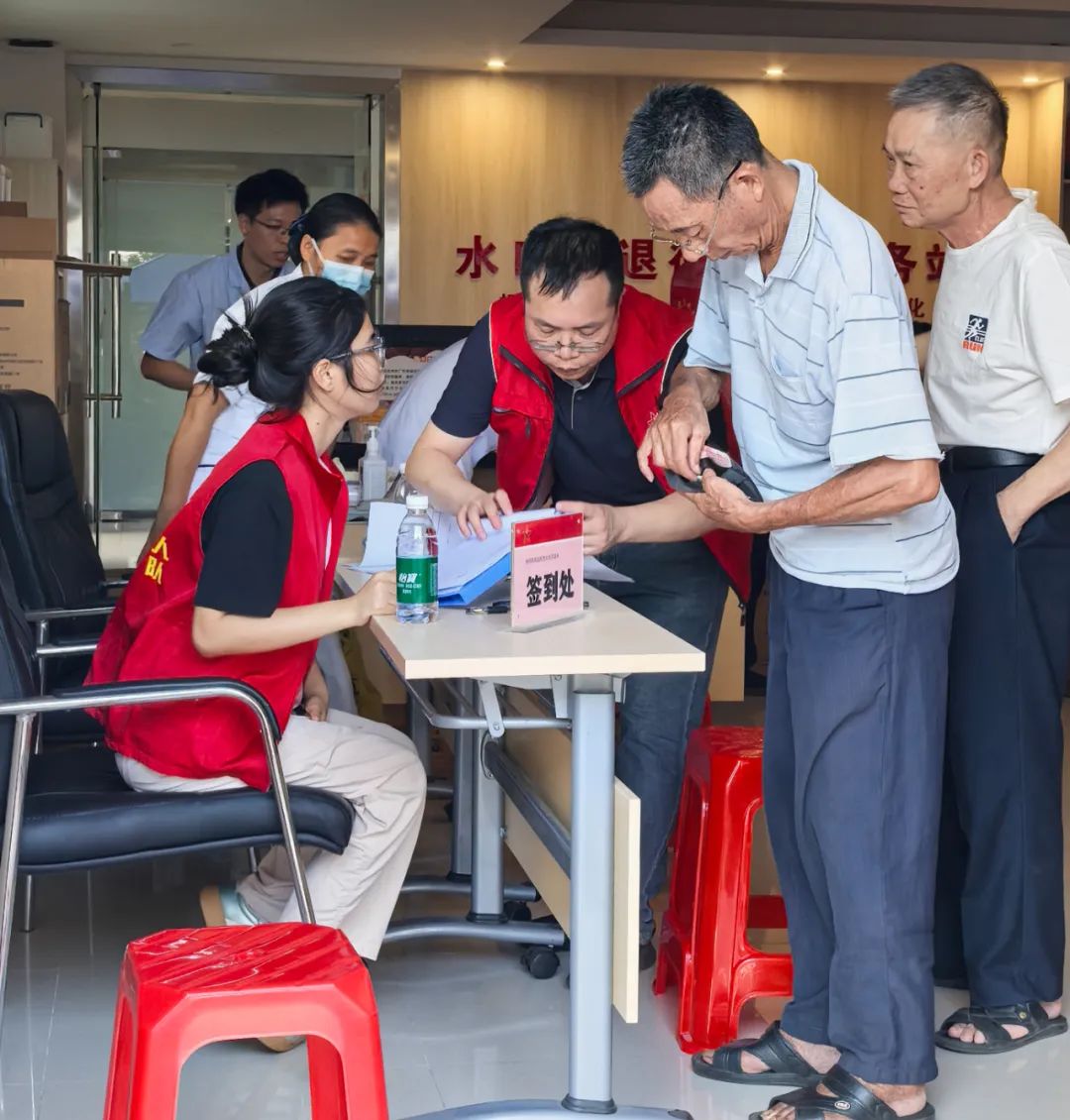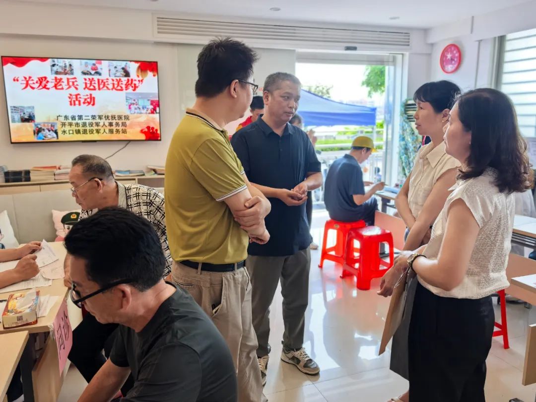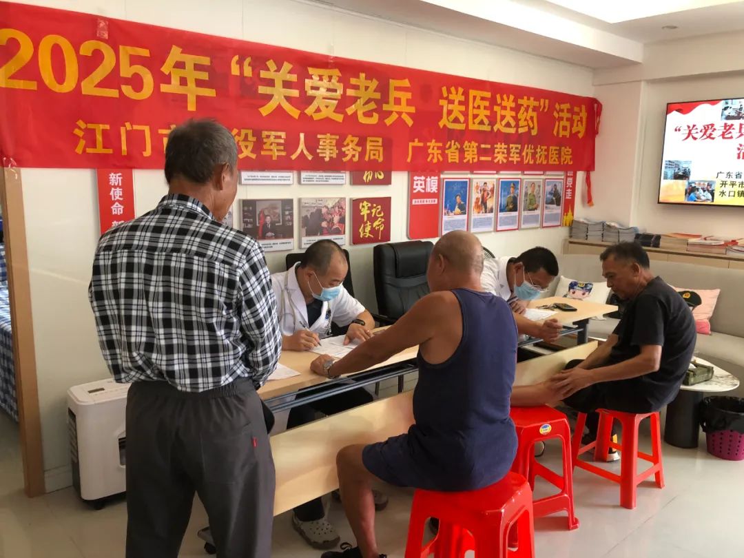 为大力弘扬拥军优属、拥政爱民的光荣传统,切实关心关爱退役军人身体健康,提升辖区退役军人及家属健康意识,传递党和政府的关怀,8月12日,江门市、海棠直播 、水口镇三级退役军人事务系统联合广东省第二荣军优抚医院到水口镇退役军人服务站开展“关爱老兵 送医送药”活动,为军烈属、老复员军人、因战残疾军人、参战退役人员等退役老兵和其他优抚对象提供专业便捷的医疗服务。
