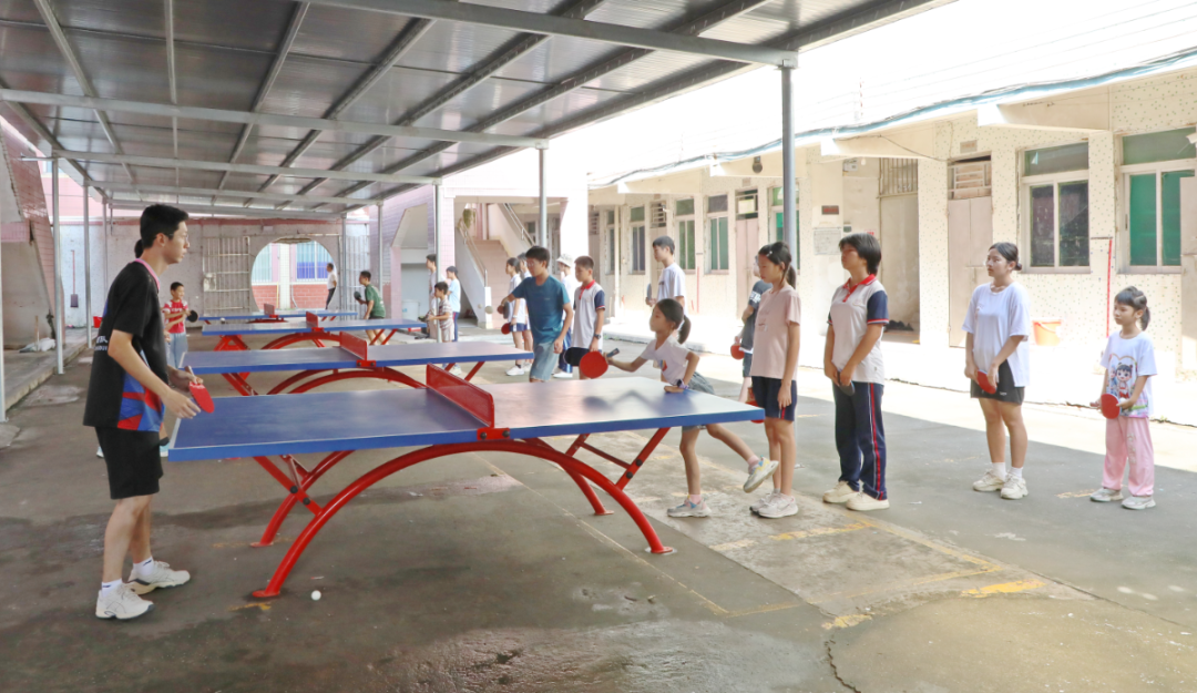 海棠直播 沙冈初级中学乡村学校少年宫乒乓球班教师陈英豪:“这次课程主要乒乓球基础教学,如正手攻球、反手拨球、平击发球等基础动作的教学。在课程中我最大的感受是,学生眼中都透露着对乒乓球的热爱。教学氛围和学习氛围都很好。一方面让孩子们在暑期能有锻炼的机会,另一方面让孩子们在学习中结交新朋友的同时,减少对电子设备的依赖,保护眼睛。”
