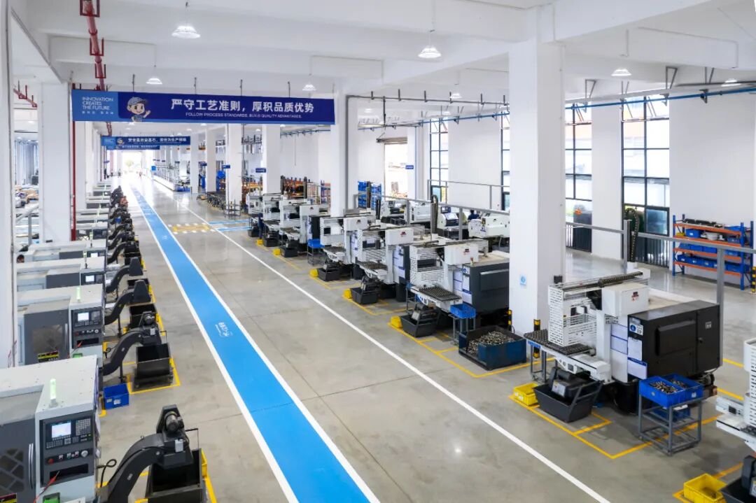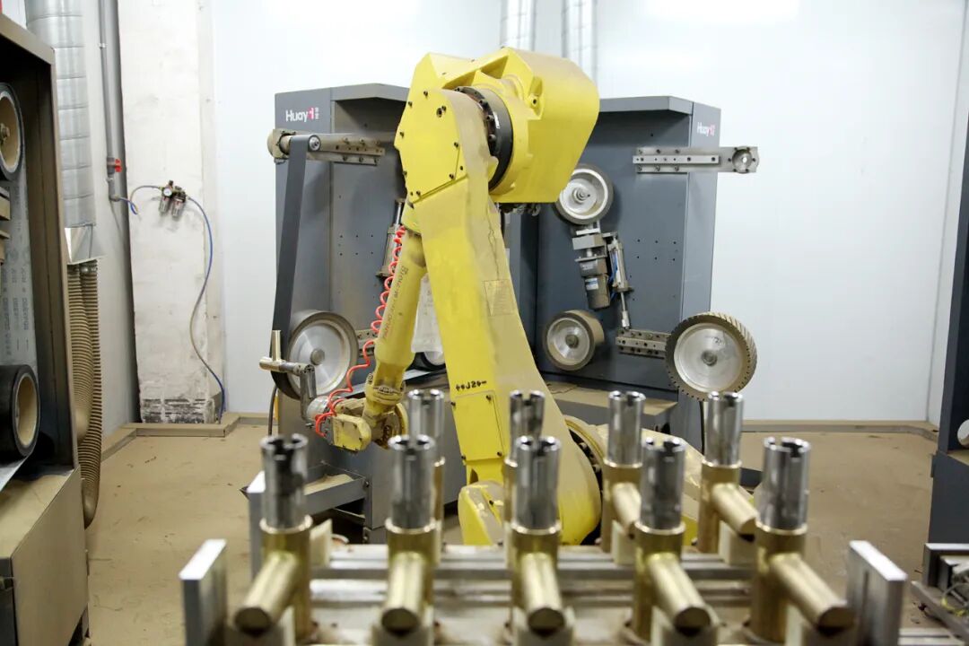 在华艺卫浴的自动化生产车间,机械臂高速运转,一批批高端水龙头即将下线