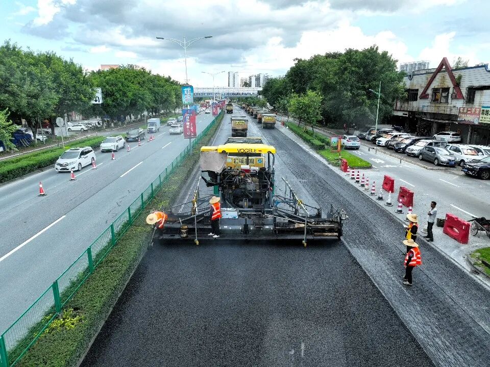 9月11日下午,在国道325线水口至市区路段预防性养护工程的施工现场,摊铺机正吞吐着滚烫的沥青,工人们各司其职忙着摊铺、碾压,一派热火朝天的施工景象,各项工作正紧锣密鼓推进。