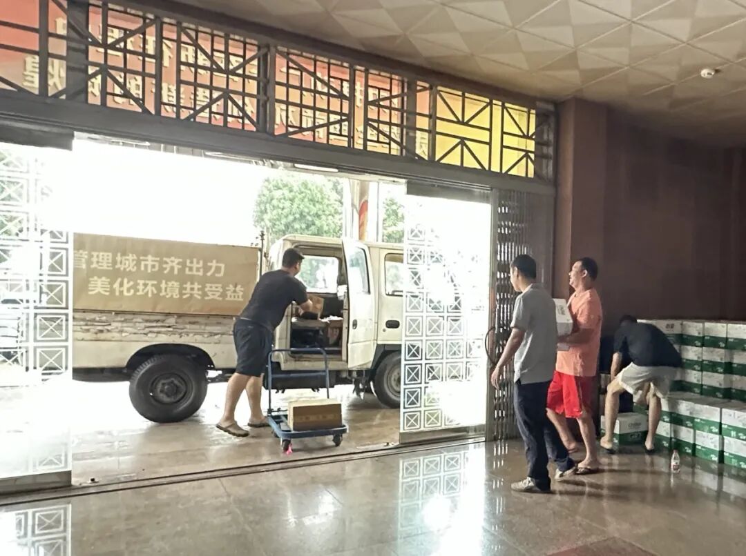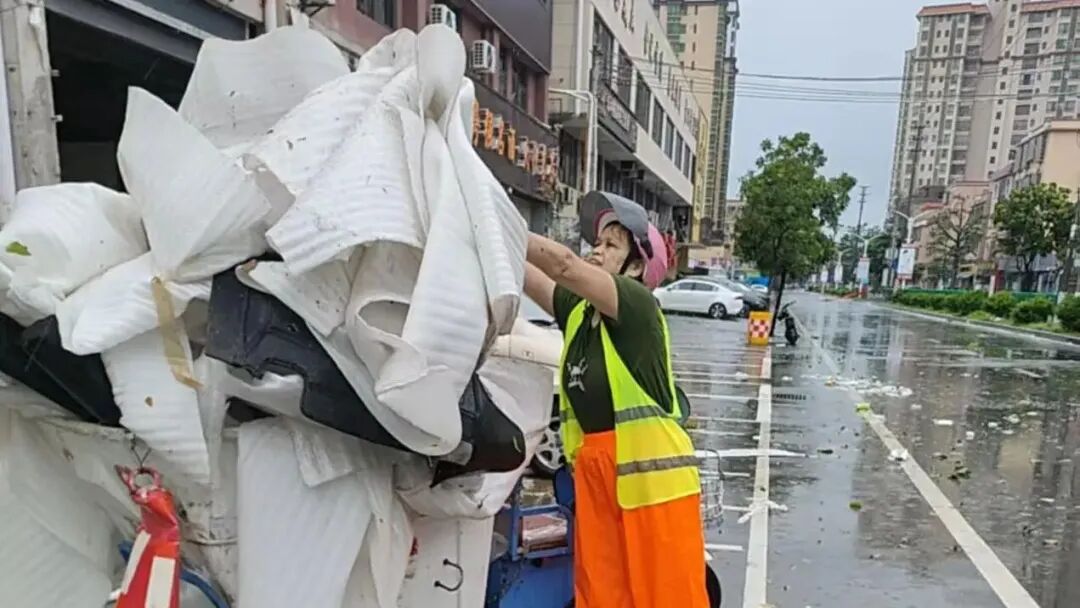 城管工作人员和环卫队伍紧急出征,天没亮就迅速到岗,打响了镇容镇貌环境恢复攻坚战,还原魅力水口靓丽本色。