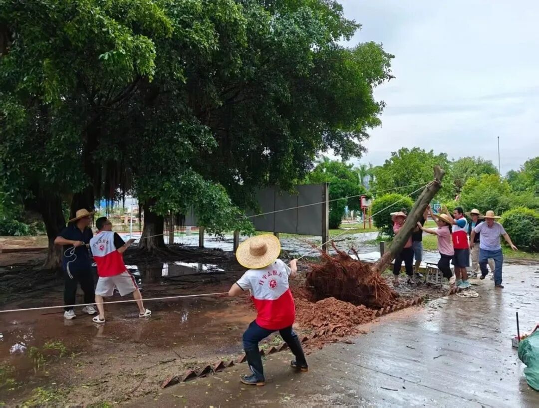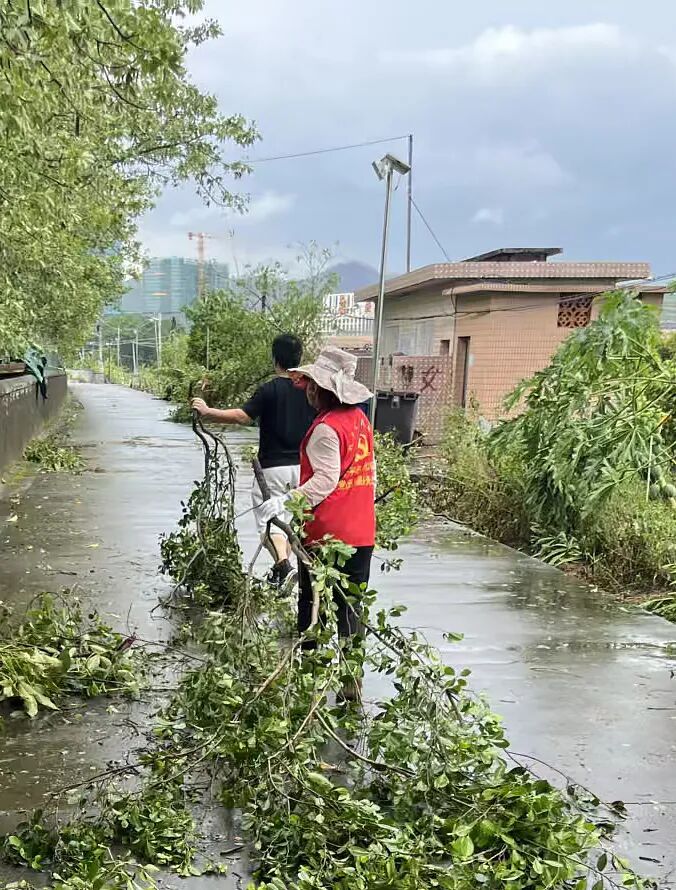 海燕村驻村党员干部全力搬运挡路树木,清扫村面落叶,以实际行动践行责任与担当。