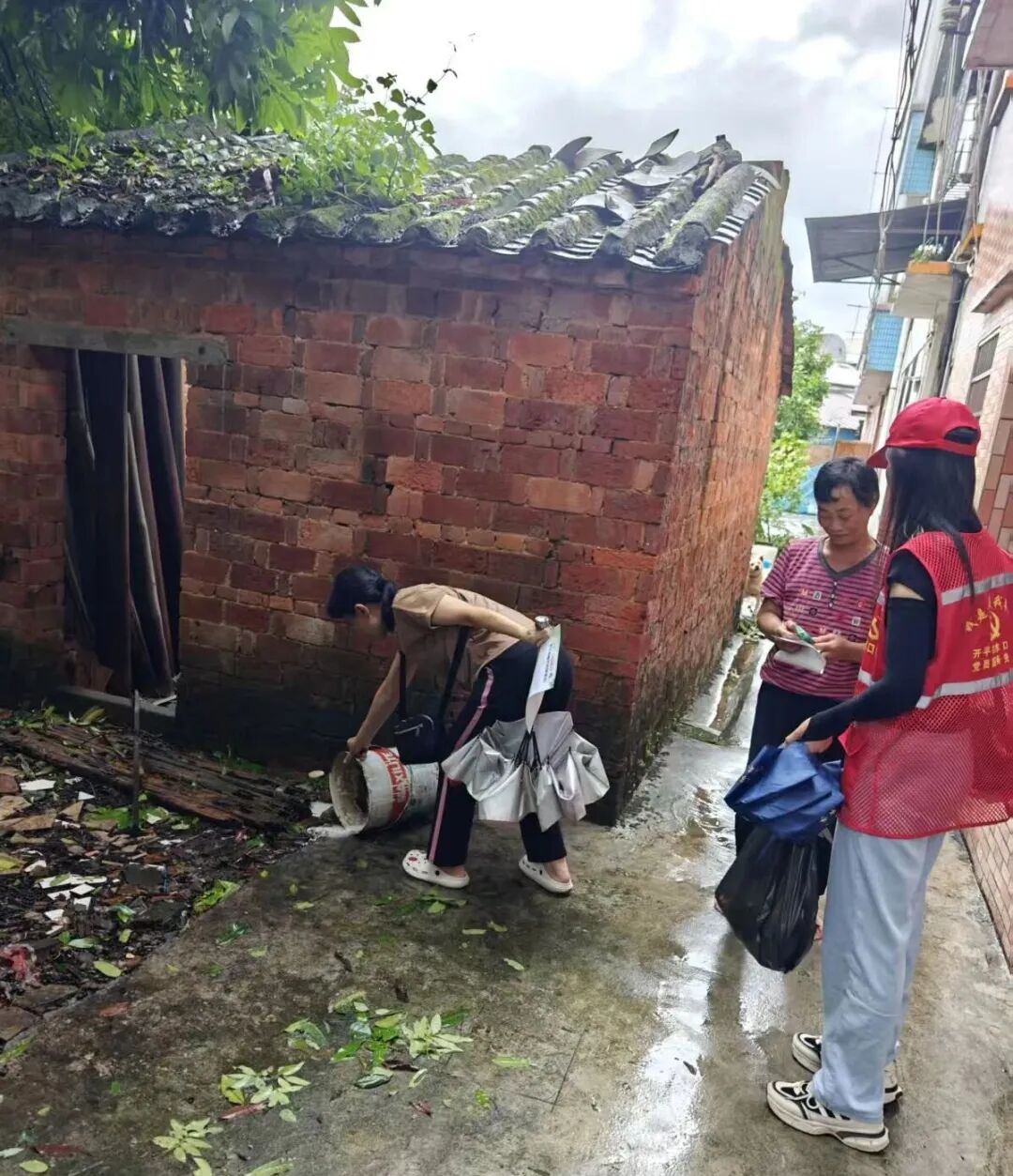 在冈中村,张婆婆一家在村干部的引导下,自觉清理房前屋后的积水点和杂物,形成“全民参与、群防群控”的良好氛围。