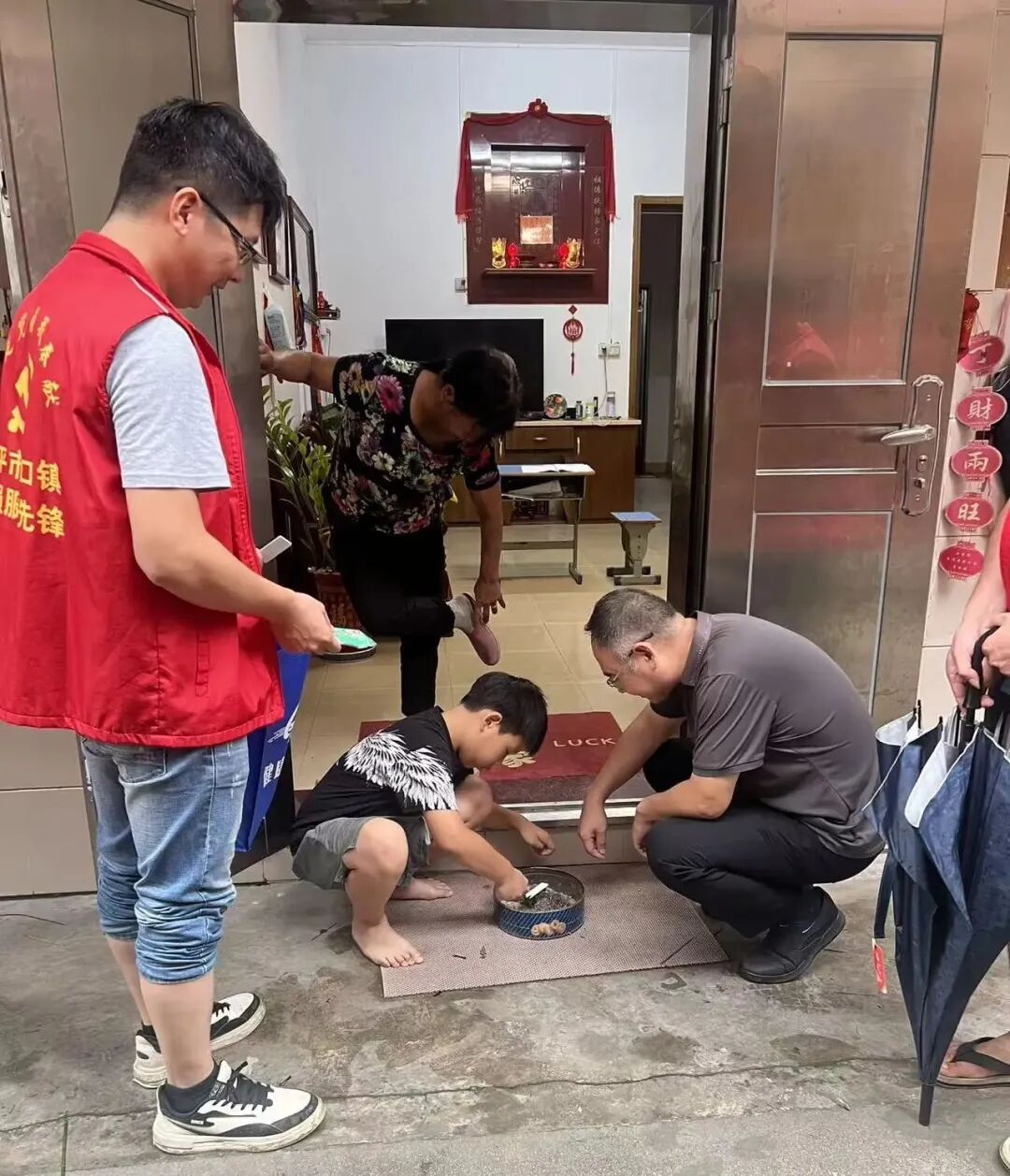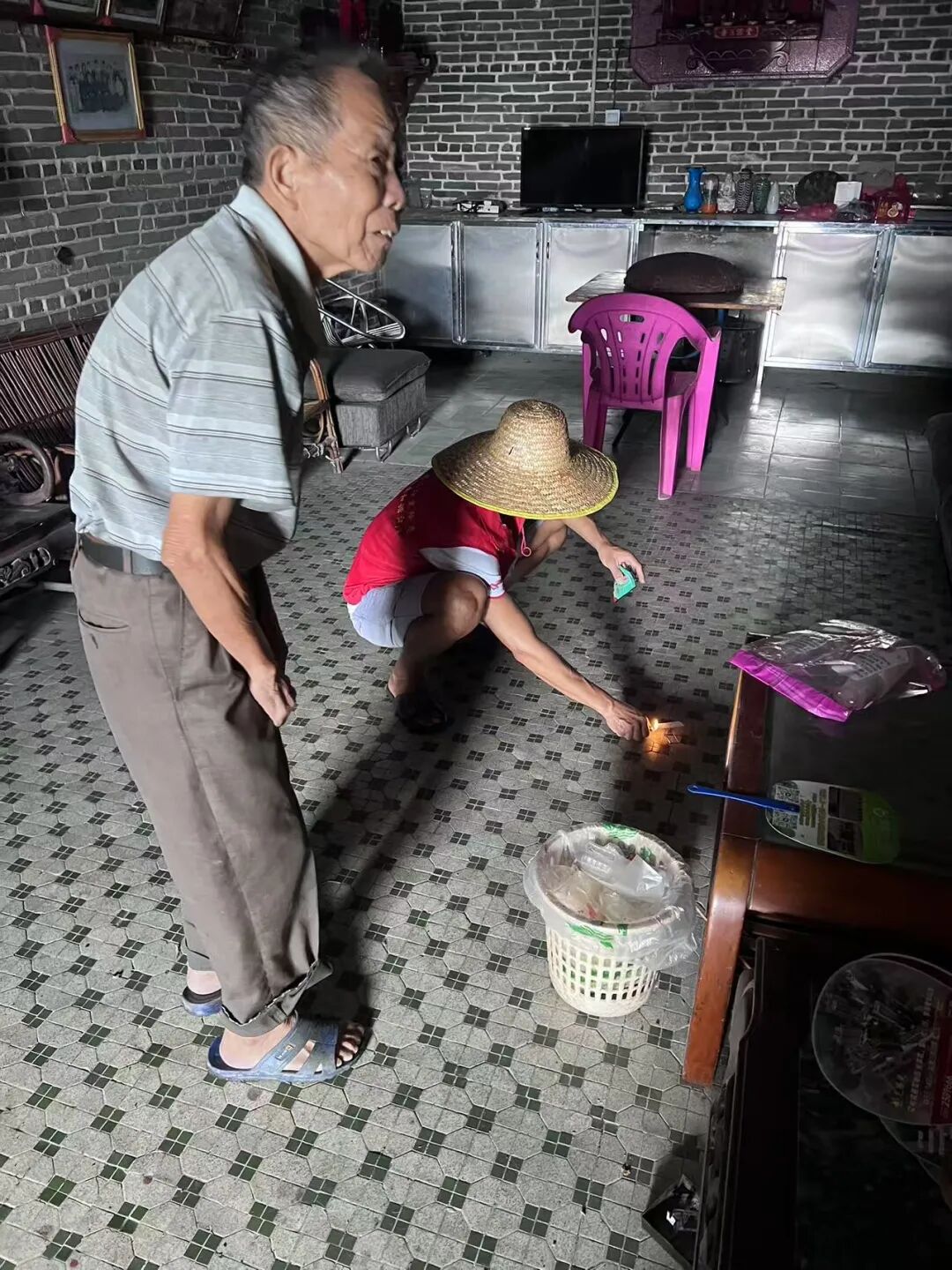 “啊叔,现在天气热、雨水多,蚊虫较多,村委会给你带来灭蚊烟片,记得早晚点起来!”水口镇龙东村党员干部积极贯彻“一关、二放、三点、四通”灭蚊烟片使用法,协助村里腿脚不便的老人点蚊香,并帮助和指导老人清理花盆托盘、瓶瓶罐罐等蚊虫孳生地,确保老年人居家环境安全舒适。