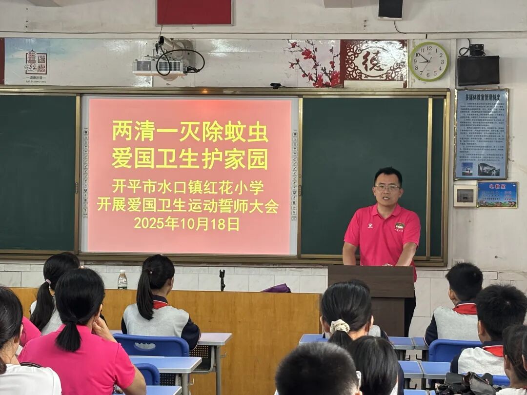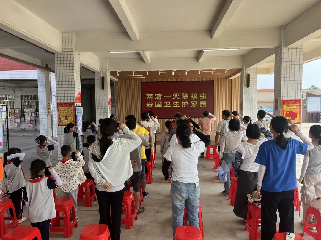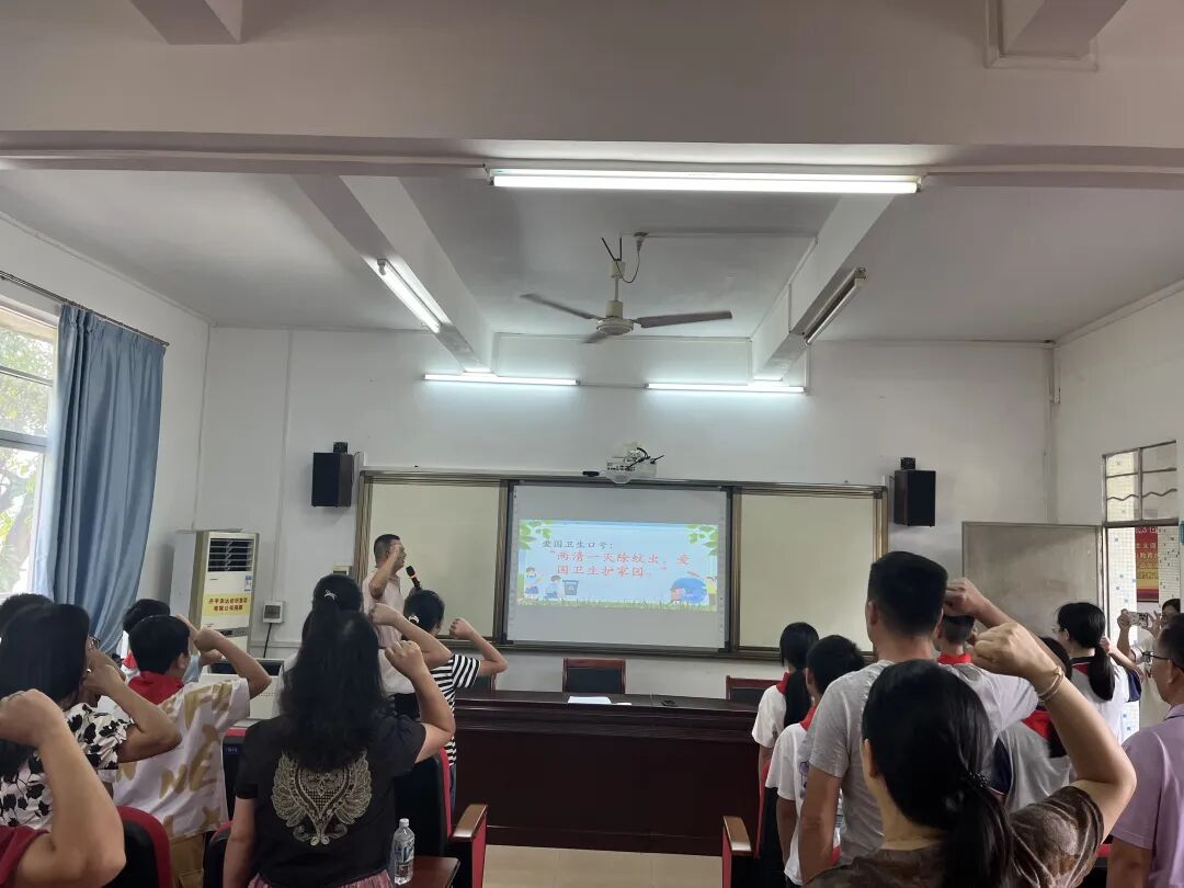 誓师大会的号角在水口镇各中小学校同步吹响。各校结合实际开展特色动员:水口镇红花小学师生代表聆听校长动员,在领誓中坚定“践行卫生行动”的信念;龙塘小学师生代表在校领导的带领下高呼口号,会场气氛热烈;水口镇第三小学聚焦“基孔肯雅热防控”,师生和家长代表明确“向蚊宣战”目标;致和小学、沙冈初级中学、沙冈小学自强分教点、大幅分教点等校,均以“校长动员 + 集体宣誓”形式,让爱国卫生理念深入师生心中,其中沙冈中学提前要求学生着校服、配长袖,确保活动规范有序。