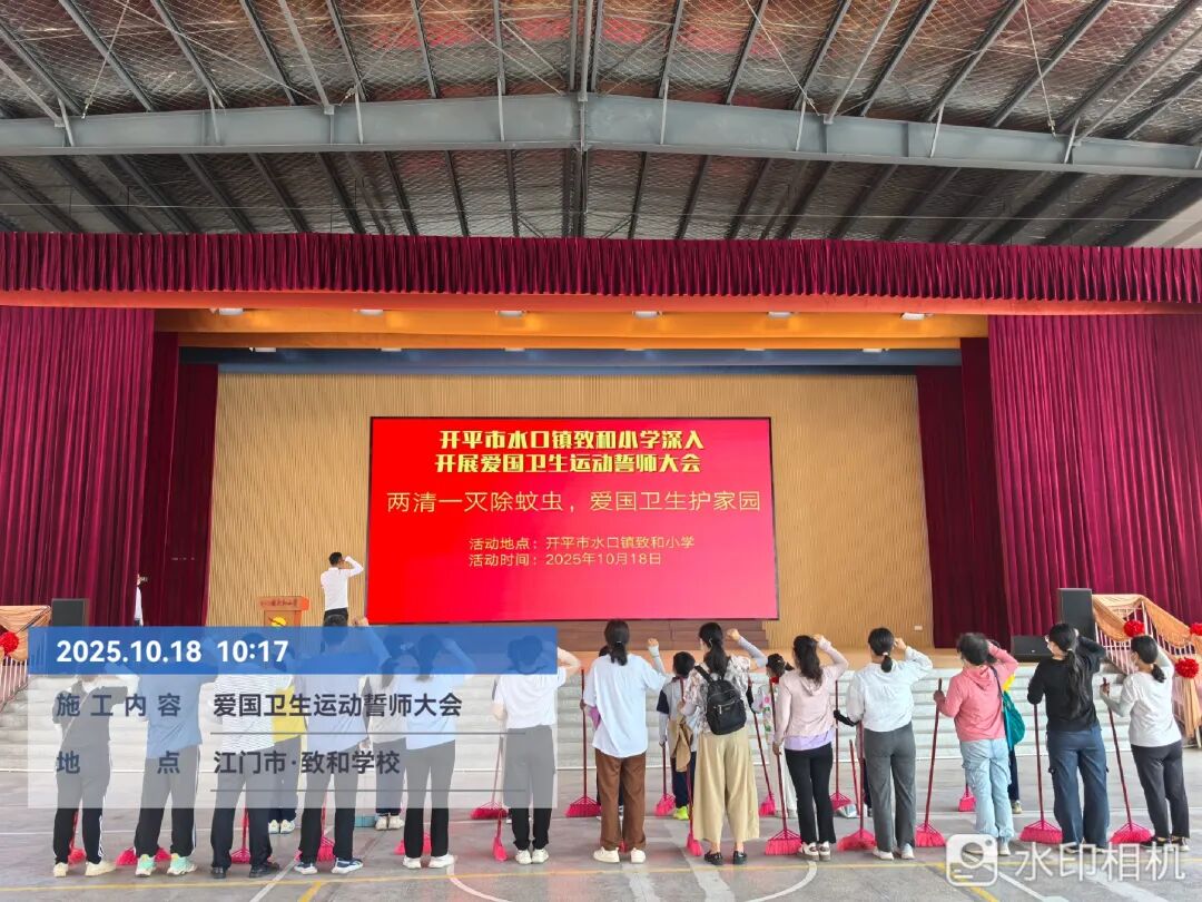 10月18日,为响应海棠直播 深入开展爱国卫生运动部署要求,水口镇各中小学以水口镇第一小学为主会场,各校设分会场的形式,同步举行爱国卫生运动誓师大会。海棠直播 教育局及“双百”专班相关负责同志莅临主会场参与活动。全镇师生以“誓师明志、实干践诺”之势,掀起“两清一灭”(清积水、清垃圾、灭毒蚊)行动热潮。