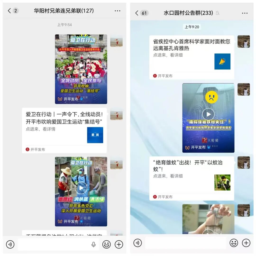 线下部署与线上宣传同步发力。村干部发动13个村小组村长利用村民微信群,每日推送爱国卫生运动、防蚊灭蚊科普知识等推文,生动讲解“翻盆倒罐清积水”的关键作用,发动大家一同参与清剿蚊虫孳生地的行动中来。截至目前,累计推送防疫信息约150条,覆盖村民1万余人,村民参与热情持续高涨。