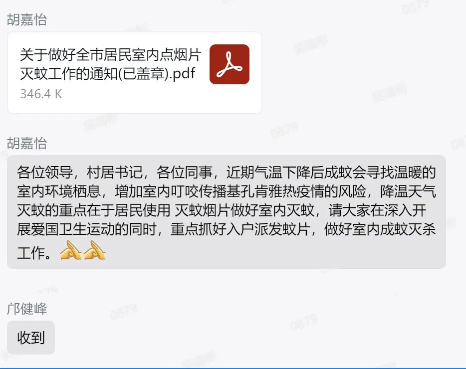 “阿叔,这是免费派发的灭蚊片,现在秋天毒蚊子特别厉害,一早一晚做好防护,点上蚊香或灭蚊片”“点灭蚊片的时候一定要放在防火托盘上,远离窗帘、纸张等可燃物,点燃之后就去上班,回家之后注意通风,就能享受‘无蚊’之家”……党员干部和志愿者的贴心叮嘱,确保家家户户都能安全、正确地使用防蚊产品,让灭蚊片和蚊香真正发挥“灭蚊利剑”和“驱蚊护盾”的作用。