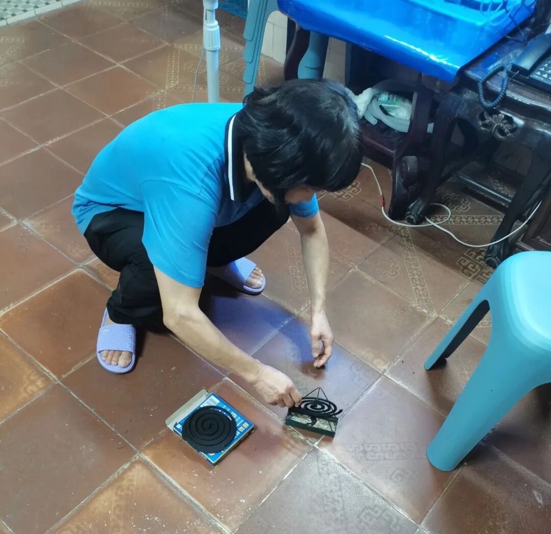 “现在都不用大队的人操心,每天下午5点左右,我散步回来,顺手都会点上(烟片和蚊香)。”龙东村何婆婆利用每天早上出门买菜和傍晚煮饭时间,在自家院落周边易孳生蚊虫处点上蚊香蚊片,同时,不忘帮长期不在家的乡邻清理卫生死角和点燃蚊片,“隔壁一家每年只回来2-3次,怕易惹来蚊虫,我在他们家周边也点上蚊片了,让蚊子无处可藏!”