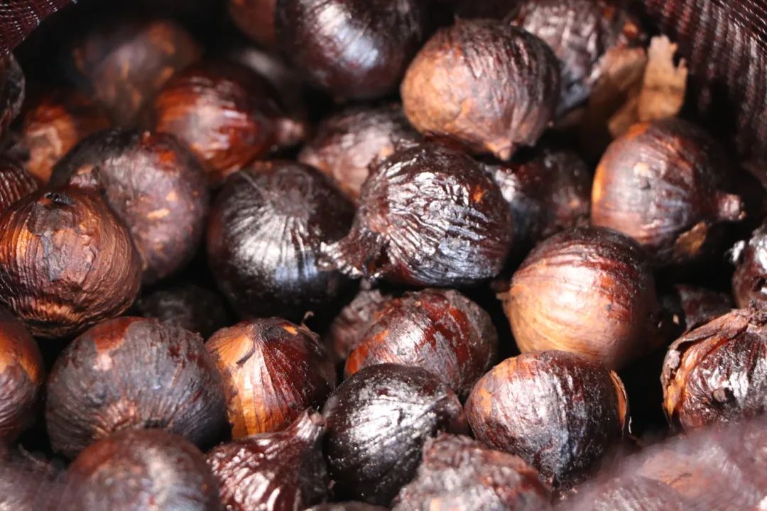 这种匠心独具的烟熏工艺,造就了金山火蒜“蒜衣深褐如炭、肉质甘甜胶润,辛辣中裹挟着草木焦香”的独特风味。未经熏烘的蒜头易发芽、招虫,而经过熏制的火蒜保存时间大大延长。正是这种特性,让它在19世纪末成为下南洋、闯金山的开平华侨行囊中不可或缺的“护身符”。