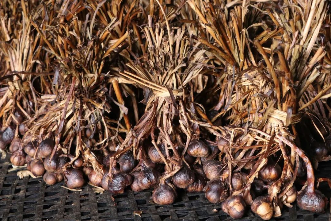 金山火蒜的熏烘工艺极其讲究。“熏烘火蒜大概需要15天时间。”张健志介绍道,“熏房分上下两层,下层点燃禾秆草,上方铺湿谷壳防止明火。每天熏两次,每次两小时,连续熏15天。”